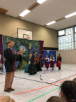 So durften sich nicht nur einzelne Schülerinnen und Schüler als Schauspieler in kleinen Rollen erproben sondern alle anderen als Chor bei den Arien "Der Vogelfänger bin ich ja" und "Ein Mädchen oder Weibchen" mitwirken, sowie am Ende des Stücks die letzte Prüfung des Prinzen Tamino gestalten. Und so waren am Ende neben Papageno, Tamino und der Prinzessin Pamina auch die Kinder absolut glücklich über eine tolle Aufführung!