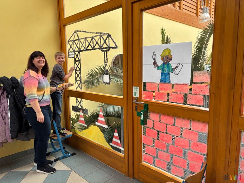 Mit viel Farbe, Fantasie und Teamgeist verwandelten die Schülerinnen und Schüler, gemeinsam mit zahlreichen Eltern und Großeltern die Fenster in farbenfrohe Kunstwerke. Ob Bagger, Bauhelme, Kräne oder Traumhäuser, die Ergebnisse zeichen eindrucksvoll, wie vielfältig und ideenreich unsere Schulgemeinschaft ist.