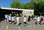 26.06.2020 - Wieder einmal hieß es Abschied nehmen. Diesmal kamen die Schülerinnen und Schüler der Klasse 4 unter ganz besonderen Bedingungen zum letzten Mal als Schildkröten, Maulwürfe und Zebras in die Selmi. Mit entsprechendem Abstand, vielen bunten Wimpeln und zahlreichen Plakaten der anderen Selmikinder verabschiedeten Frau Schilhabel Henning, Herr Eichel, Frau Goclik und einige Eltern die Viertklässler klassenweise auf dem Schulhof und enthüllten ihre Steele.