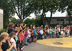 08.07.2016 - Verabschiedung 4. Klässler. Am letzten Schultag des Schuljahres 2015/2016 flatterten die Taschentücher - die Schülerinnen und Schüler der 4. Klasse verbrachten ihren letzten Schultag an ihrer Selmi und verabschiedeten sich von ihr. Frau Schilhabel-Henning verlieh, wie an jedem letzten Schultag, den Streithelfern die Urkunden. Durch das traditionelle Enthüllen der Stele wurden die zukünftigen Fünftklässler an die weiterführenden Schulen "entlassen". Wir wünschen allen viel Erfolg auf dem weiteren Lebensweg.