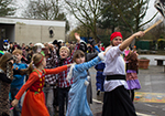 05.02.2016 - Karneval. Alle Jahre wieder steht in Wiescherhöfen die Schulwelt auf dem Kopf. Nichts geht mehr seinem normalen Gang. Statt lehrreicher Schulbücher gibt es schillerndes Konfetti, statt Hillikleidung tragen Kinder und Erwachsene funkelnde Kostüme. Nach einer klasseninternen Karnevalsfeier tanzen alle Schülerinnen und Schüler gemeinsam in einer Polonaise auf dem Schulhof.