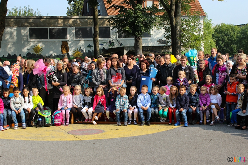 21.08.2014 - Herzlich Willkommen an der Selmigerheideschule! Am heutigen Donnerstag war es für viele neue Erstklässlerinnen und Erstklässler so weit. Der erste Schultag an der Selmi! Auf dem Schulhof wurden die Kinder von den aktuellen Zweitklässlern mit einem Lied empfangen. Weitere Zweitklässler luden die Neuankömmlinge zu dem gemeinsamen Tanz "Up, Down Turn Around", ein, ehe es wenig später in ihre neuen Klassenräume zur ersten Schulstunde ging.