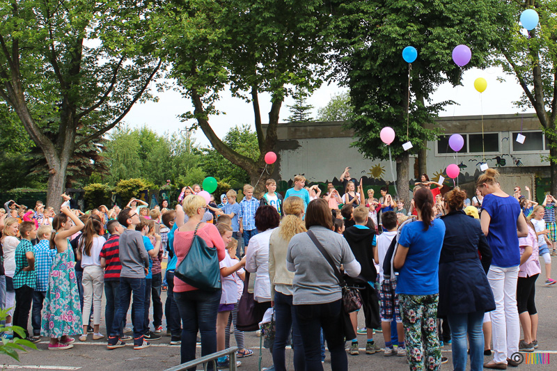 26.06.2015 - Verabschiedung. Der letzte Schultag, er war da und das musste gefeiert werden … und zwar nicht nur, weil sich alle, SchülerInnen und LehrerInnen, auf die Ferien freuten. Denn es galt auch, unsere 4. Klassen gebührend zu verabschieden - ihre Grundschulzeit endete mit diesem Tag. Wir wünschen allen 4. Klässlern viel Erfolg, Gesundheit und Freude am Lernen auf ihrem weiteren Lebensweg.