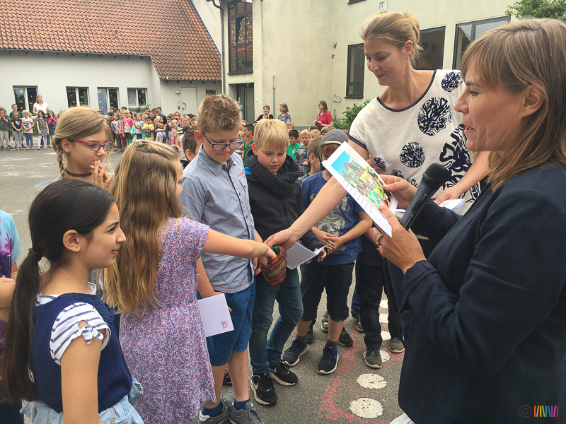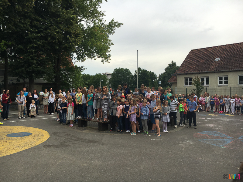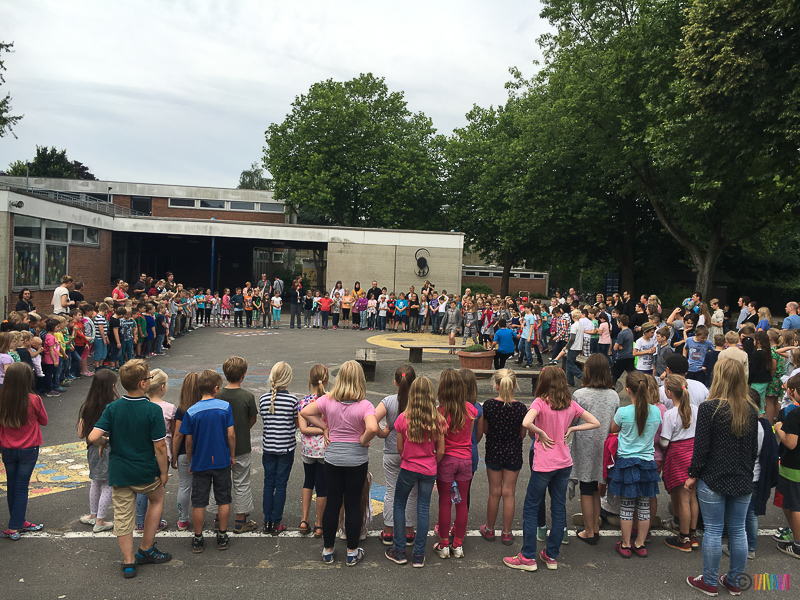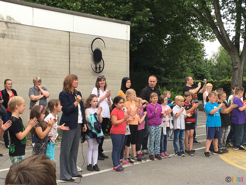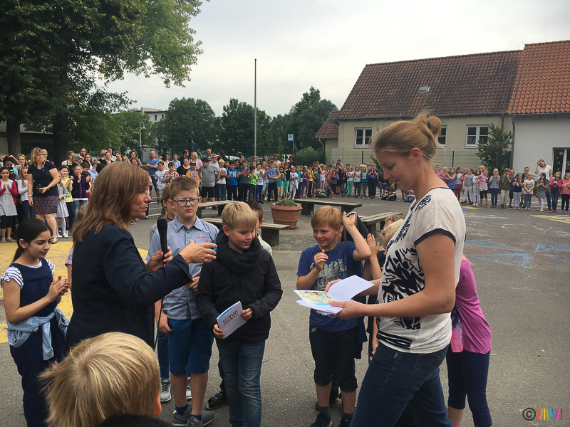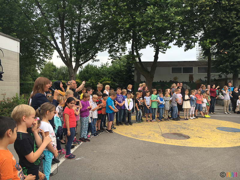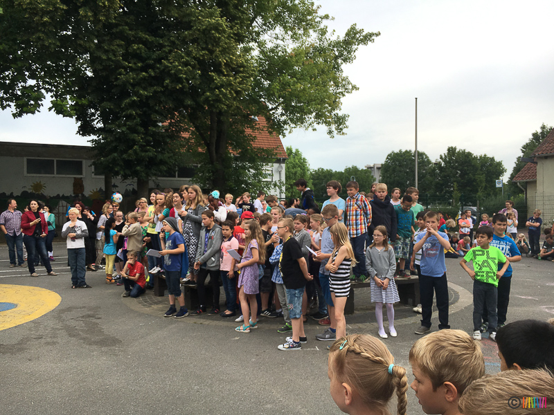 08.07.2016 - Verabschiedung 4. Klässler. Am letzten Schultag des Schuljahres 2015/2016 flatterten die Taschentücher - die Schülerinnen und Schüler der 4. Klasse verbrachten ihren letzten Schultag an ihrer Selmi und verabschiedeten sich von ihr. Frau Schilhabel-Henning verlieh, wie an jedem letzten Schultag, den Streithelfern die Urkunden. Durch das traditionelle Enthüllen der Stele wurden die zukünftigen Fünftklässler an die weiterführenden Schulen "entlassen". Wir wünschen allen viel Erfolg auf dem weiteren Lebensweg.