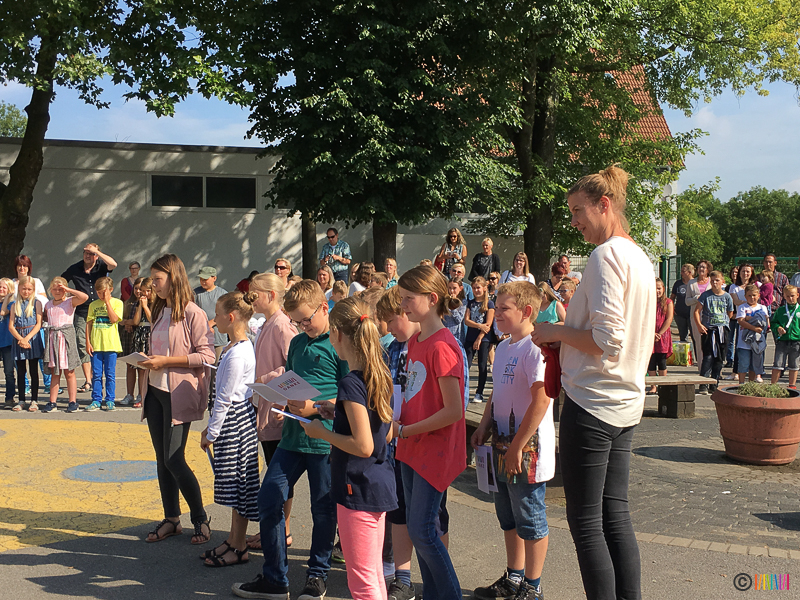 14.07.2017 - Dass uns die "Großen" am Ende eines jeden Schuljahres verlassen, ist nichts Neues. Das ist ganz normal und auch gut, denn alle Kinder der vierten Klassen freuen sich natürlich auch auf das, was kommt, und sind unheimlich gespannt auf ihre neue Schule. Dass wir aber auch traurig sind, bleibt nicht aus. Und aus diesem Grund gab es selbstverständlich auch am letzten Schultag wieder einen Verabschiedungskreis auf dem Selmi-Schulhof mit anschließender Enthüllung der diesjährigen Stelen.