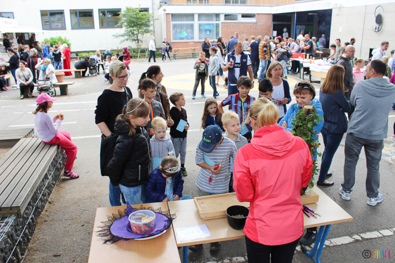23.06.2018 - „Die Selmi wird zum Märchenwald“! So lautete das Motto unseres Schulfestes, das an diesem Samstag auf unserem Schulhof stattfand. Alle vier Jahre feiern wir unser Schulfest und auch in diesem Jahr können wir behaupten: „Es war ein Erfolg“. Durch das großartige Engagement von Eltern, den Mitgliedern des Fördervereins, unseren Schülerinnen und Schülern, dem Lehrerkollegium und ansässigen Vereinen wurde unser Fest für alle zu einem besonderen Erlebnis mit jeder Menge Spaß sowie kulinarischen Köstlichkeiten aus aller Welt. Drei Stunden lang hatten die zum Teil märchenhaft verkleideten Kinder Zeit, unterschiedliche Stationen wie z.B. „Angeln“, „Dosenwerfen“, „Torwandschießen“, „Sackhüpfen“ und „Basteln“ zu durchlaufen. Zudem gab es weitere tolle Angebote wie Trampolinspringen, der Besuch in einem Polizei- und oder Feuerwehrauto oder dem Lauschen spannender Märchen im Märchenzelt. Einzelne Klassen, die Tanzgruppe, das Jeki-Orchester, Kinder der Ganztagsgruppe sowie die Tanz- und Chor-AG der Schule rundeten mit ihren tollen Auftritten und einem abwechslungsreichen Programm das Fest ab.