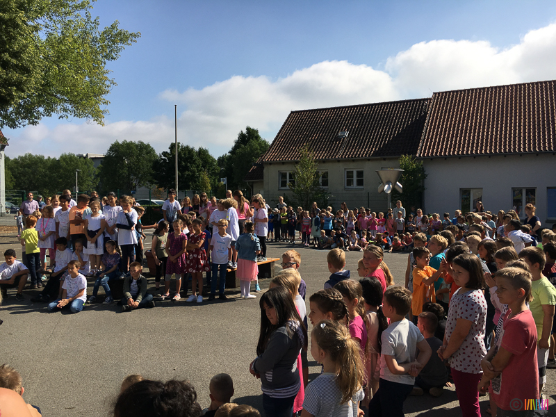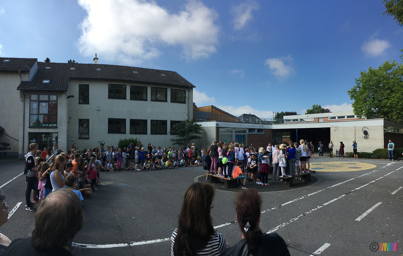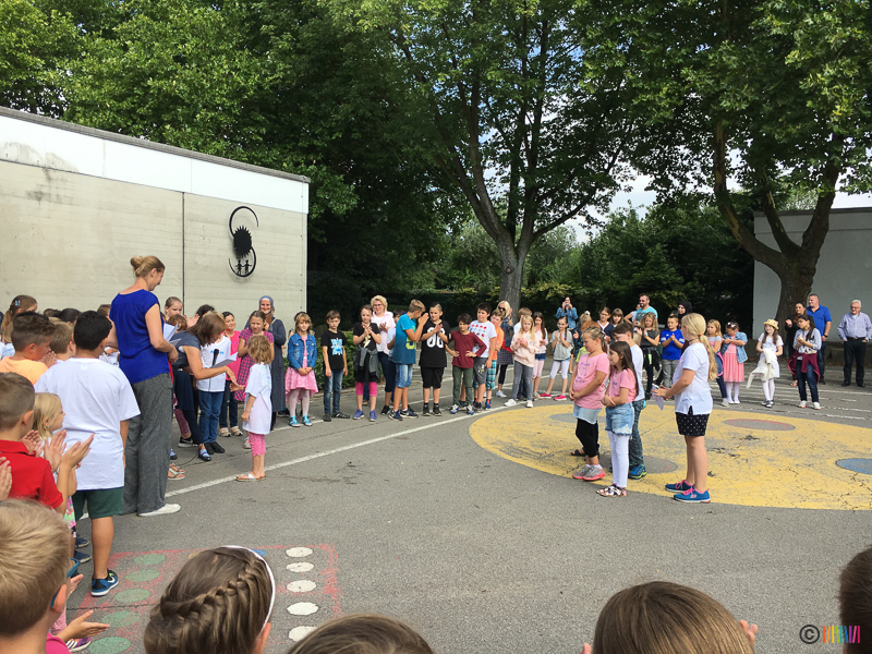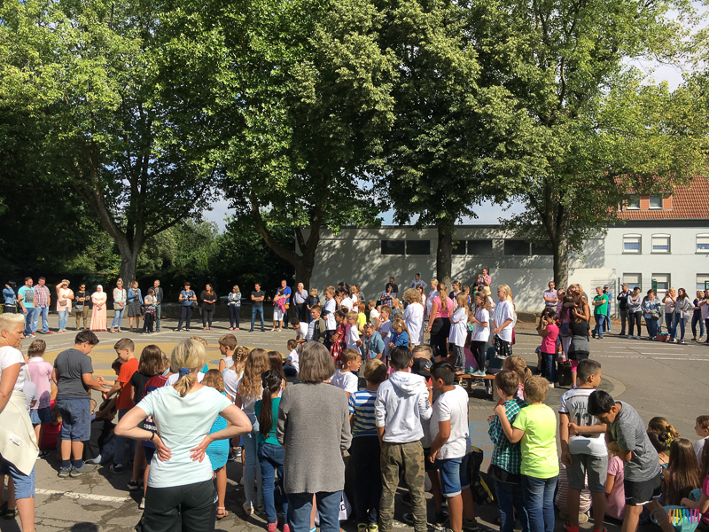13.07.2018 - Vier Jahre haben sie daraufhin gearbeitet. Heute ist es so weit. Wieder einmal verabschiedet sich ein vierter Jahrgang, um nach den Sommerferien in einen neuen Lebensabschnitt zu starten. Musikalisch untermalt wurde der Abschied mit den "Cup Song" durch die Klasse 4c. Der vergangenen Selmi-Zeit setzen sie mit der Enthüllung ihrer Initialien auf der Stehle ein Denkmal. Ein besonderer Dank gilt den Streitschlichtern, die in den letzten Jahren zum guten Schulklima der Selmigerheideschule beigetragen haben. Ebenso verabschieden müssen wir uns heute von drei lieb gewonnenen Kolleginnen. Frau Pluta, Frau Cieszynski und Frau Gurda werden im kommenden Schuljahr nicht mehr an der Selmigerheideschule unterrichten. Wir bedanken uns für die schöne Zeit und wünschen ihnen alles Gute für die Zukunft.