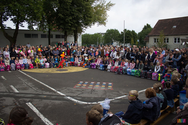 30.08.2018 - Herzlich Willkommen an der Selmigerheideschule! Am heutigen Donnerstag war es für 76 neue Erstklässlerinnen und Erstklässler so weit. Der erste Schultag an der Selmi! Auf dem Schulhof wurden die Kinder von den aktuellen Zweitklässlern mit dem Lied "Alle Kinder lernen Lesen" empfangen. Weitere Zweitklässler luden die Neuankömmlinge zu dem gemeinsamen Tanz "Up, Down Turn Around", ein, ehe es wenig später für die Drachen, Waschbären und Eulen in ihre neuen Klassenräume zur ersten Schulstunde ging. Währenddessen wurden Eltern, Großeltern und weitere Familienangehörige der Erstklässler vom Förderverein sowie von Eltern der 2. Klasse zu Kaffee und Kuchen eingeladen. Vielen herzlichen Dank an dieser Stelle für die köstliche Bewirtung.