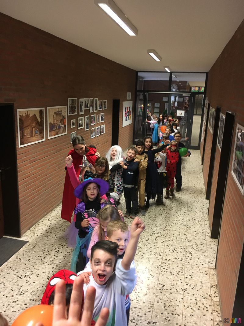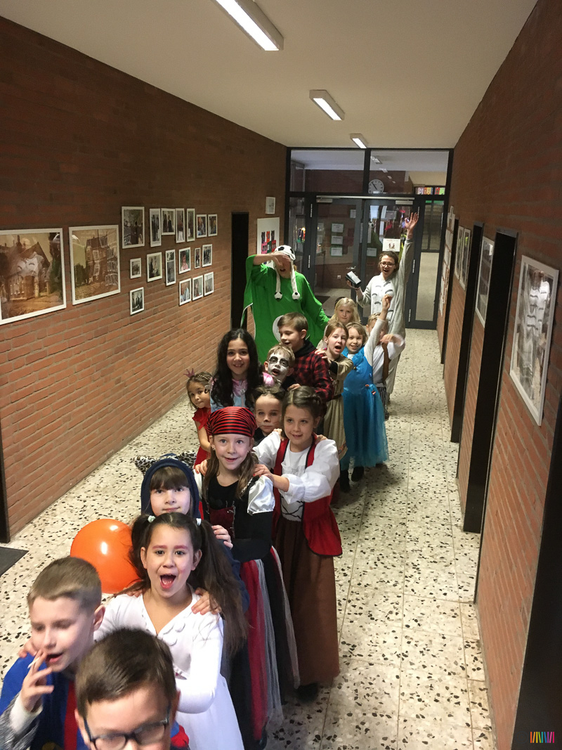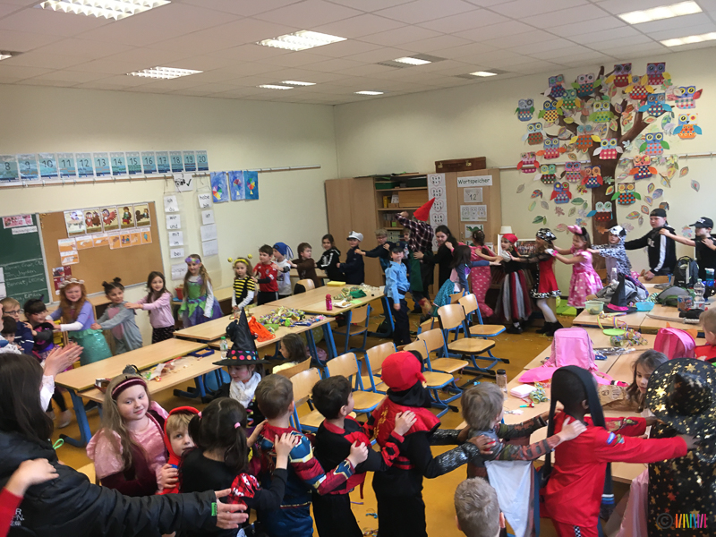 05.03.2019 - In diesem Jahr feierten wir an der Selmi erstmalig am Dienstag nach Rosenmontag Karneval. Alle Kinder, Lehrerinnen und Lehrer hatten sich verkleidet. Im Schulgebäude wimmelte es von Piraten, Prinzessinnen, Cowboys, Clowns, Indianern, Hexen, verschiedenen Tieren und vielen weiteren lustigen Kostümen. Für jeweils eine Schulstunde durften die Kinder aller Jahrgänge mit der Lehrerin Annka Westbrock der "TANZ Kunst" Schule sportlich-dynamische Tanzschritte einüben. Vor- und nachher wurde in den Klassenräumen kunterbunt und mit viel Freude gefeiert und getanzt.