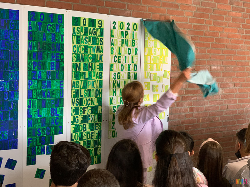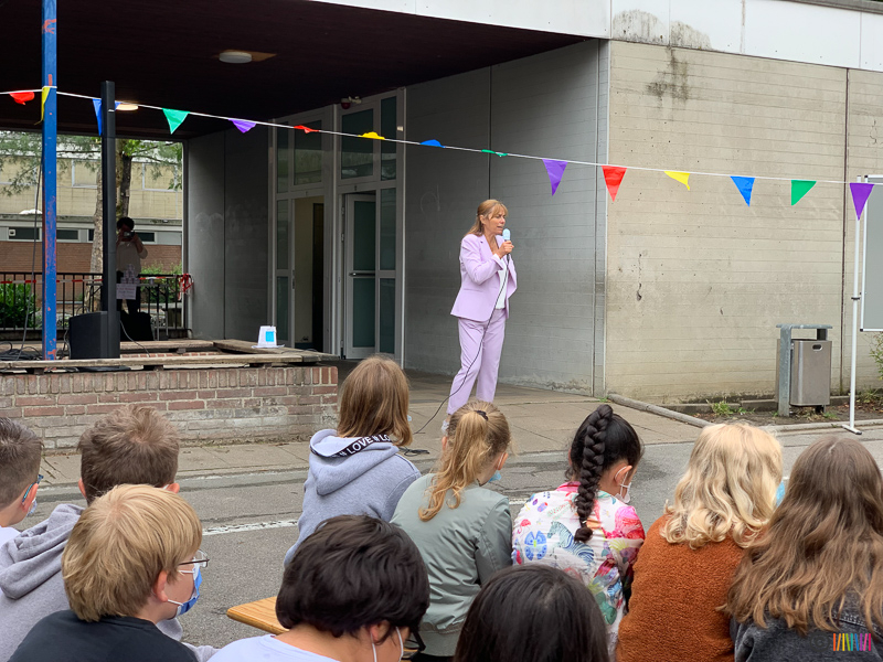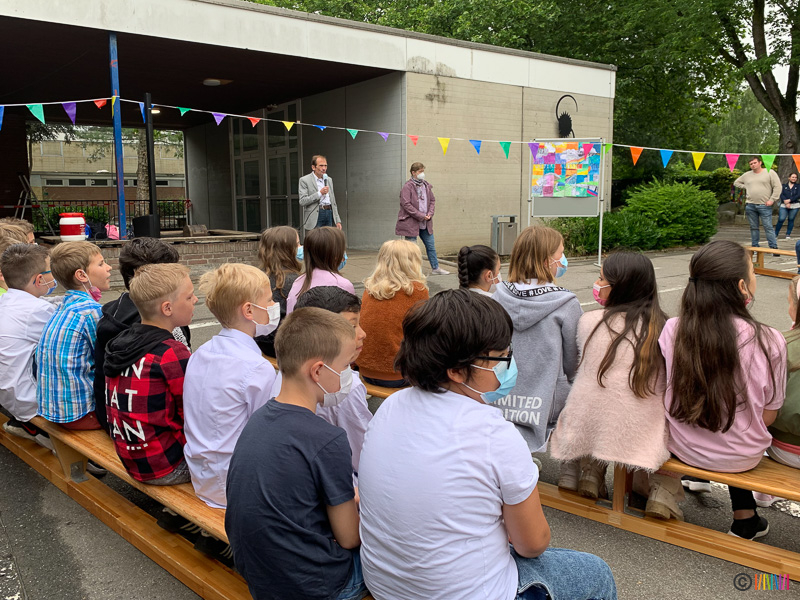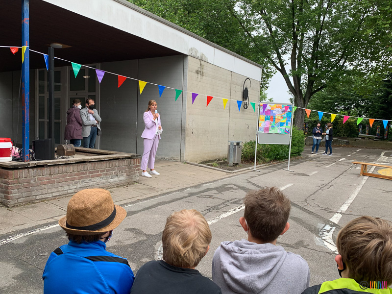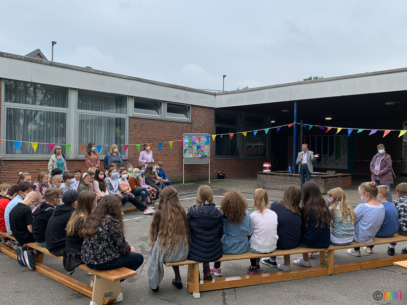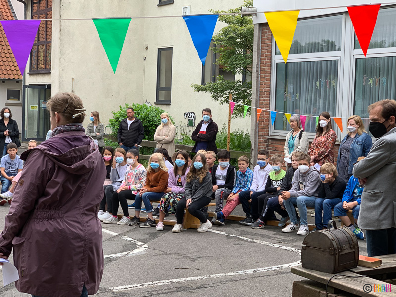 Durch das traditionelle Enthüllen der Stele wurden die zukünftigen Fünftklässler an die weiterführenden Schulen "entlassen". Wir wünschen allen viel Erfolg auf dem weiteren Lebensweg. Ebenso verabschieden müssen wir uns heute von einer lieb gewonnenen Kollegin. Frau Rubbert wird im kommenden Schuljahr nicht mehr an der Selmigerheideschule unterrichten. Wir bedanken uns für die schöne Zeit und wünschen ihr alles Gute für die Zukunft.