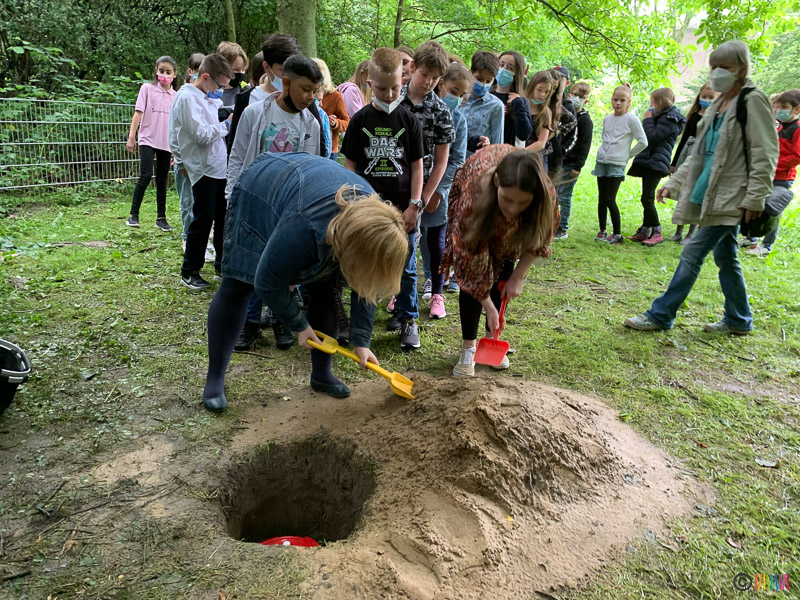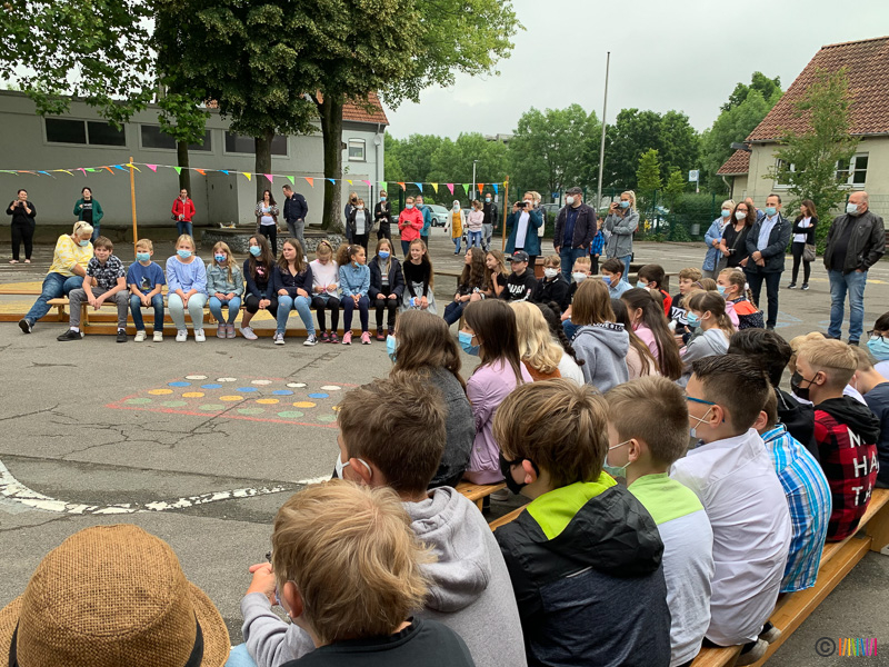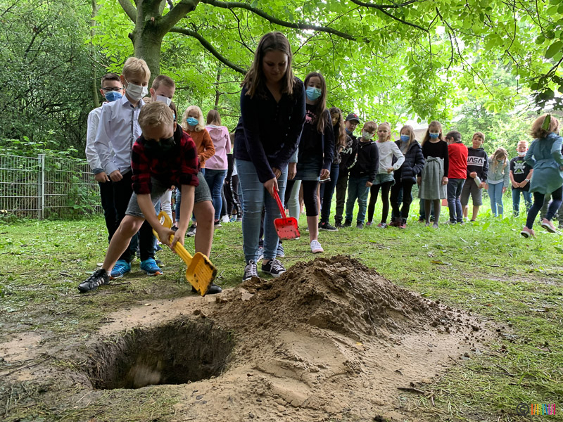 02.07.2021 - Verabschiedung 4. Klässler. Am letzten Schultag des Schuljahres flatterten die Taschentücher - die Schülerinnen und Schüler der 4. Klasse verbrachten ihren letzten Schultag an ihrer Selmi und verabschiedeten sich von ihr. Sie vergruben eine Zeitkapsel, in der sie Notizen, Gegenstände und Bilder aus der besonderen Zeit der Pandemie sammelten.