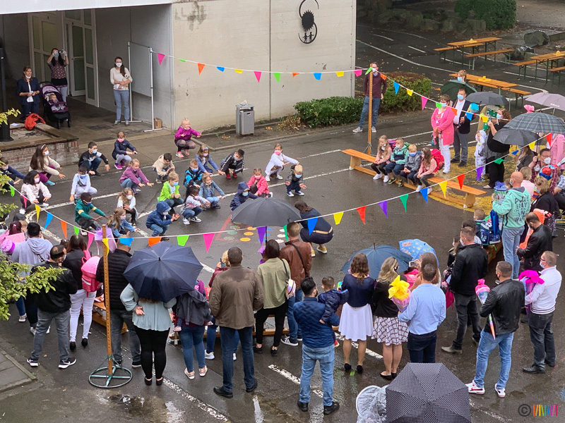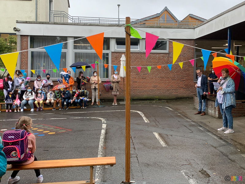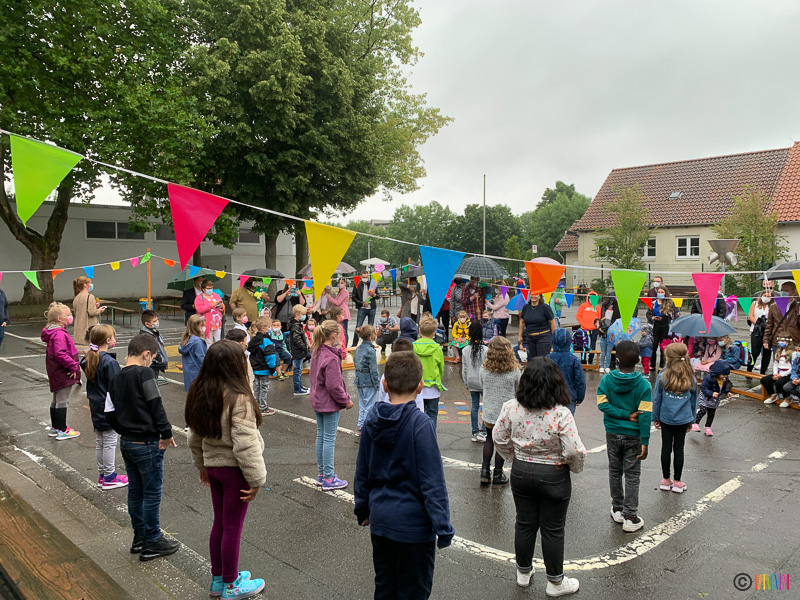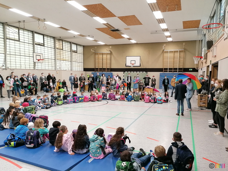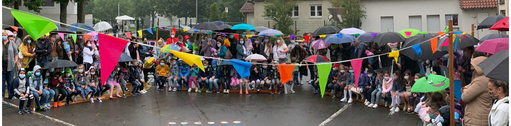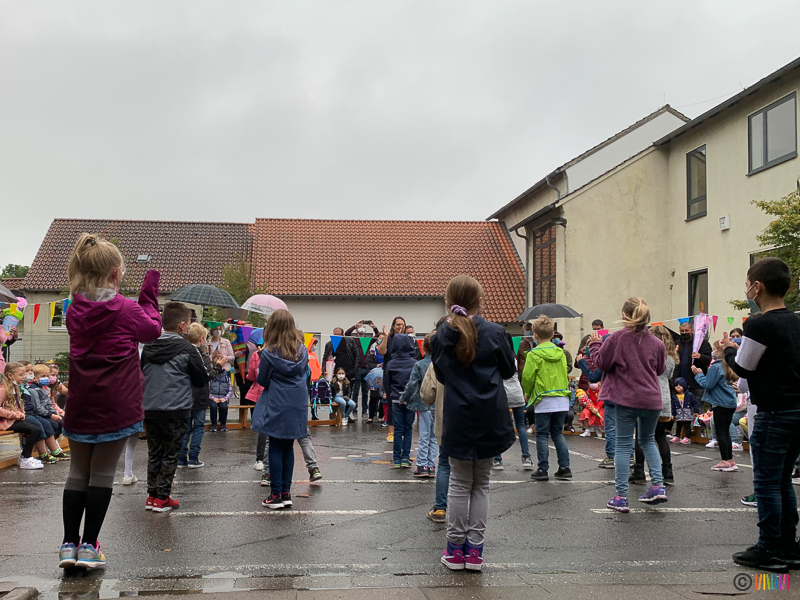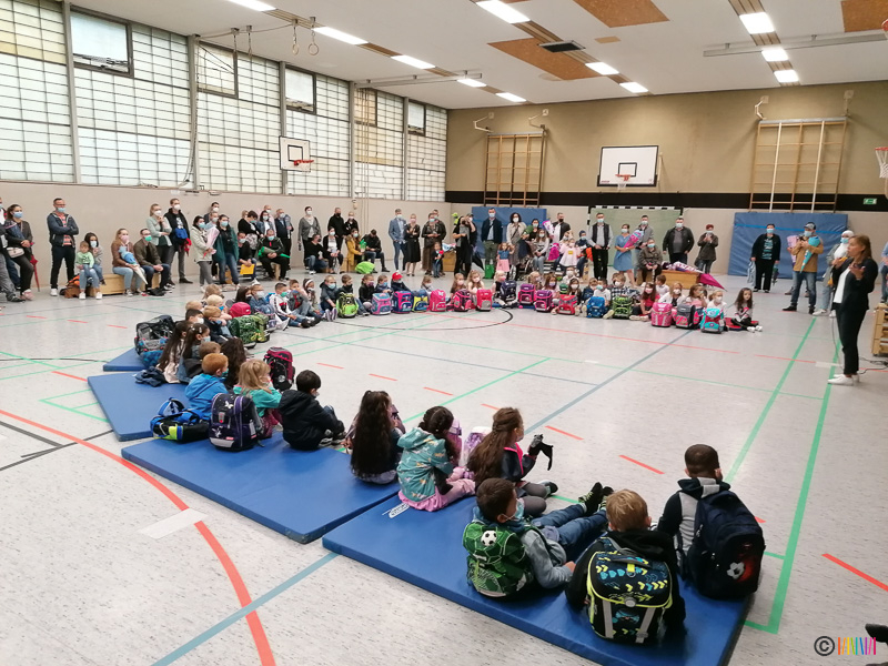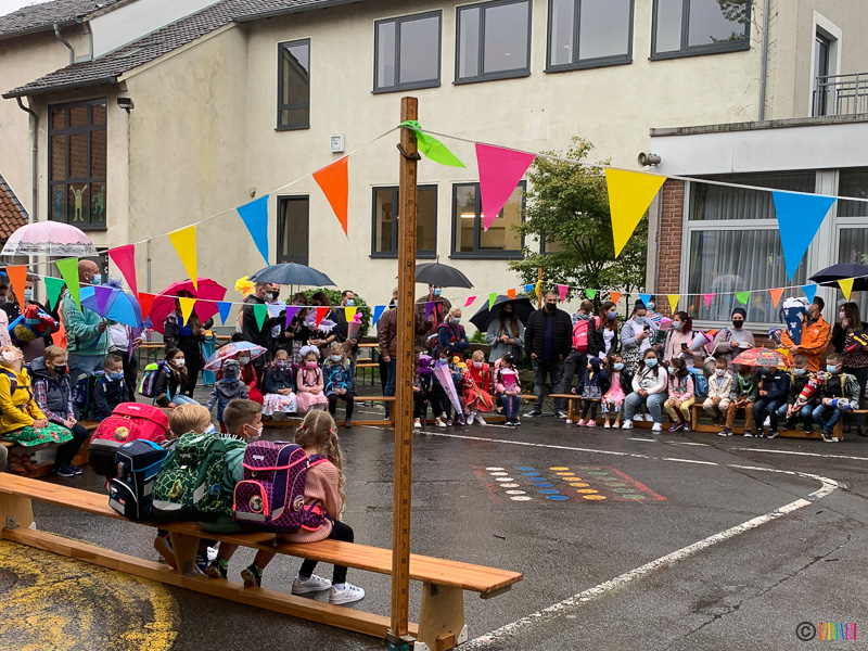 19.08.2021 - Herzlich Willkommen an der Selmigerheideschule! Am heutigen Donnerstag war es für 75 neue Erstklässlerinnen und Erstklässler so weit. Der erste Schultag an der Selmi! Aufgrund von Coronamaßnahmen wurden die Kinder in diesem Jahr klassenweise an unserer Schule begrüßt. Trotz des durchwachsenen Wetters konnten die Erdmännchen auf dem Schulhof von der Schulleitung, Vertretern der Kirchen sowie den aktuellen Zweitklässlern empfangen werden. Im Anschluss wichen die Fledermaus- und Koalaklasse dem stärker werdenden Regen und setzten die Feierlichkeiten in der Turnhalle fort. Dort wurden die Neuankömmlinge von weiteren Zweitklässlern mit einem Tanz begrüßt, ehe es wenig später in ihre neuen Klassenräume zur ersten Schulstunde ging. Währenddessen wurden die Eltern der Erstklässler vom Förderverein sowie von Eltern der 2. Klassen zu Kaffee und Erfrischungsgetränken eingeladen. Vielen herzlichen Dank an dieser Stelle für die Bewirtung und die unermüdlichen Helferinnen und Helfer. Liebe Erstklässlerinnen, liebe Erstklässler, liebe Eltern, liebe Großeltern, Freunde und Bekannte! Das ganze Kollegium der Selmigerheideschule wünscht euch und Ihnen einen tollen Start in das Schulleben!