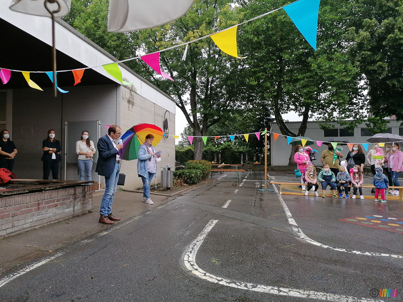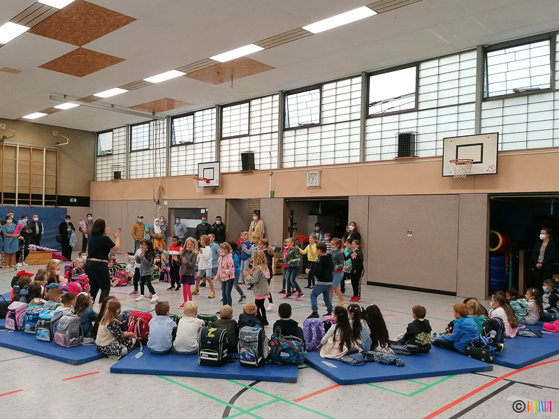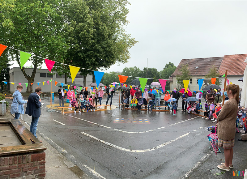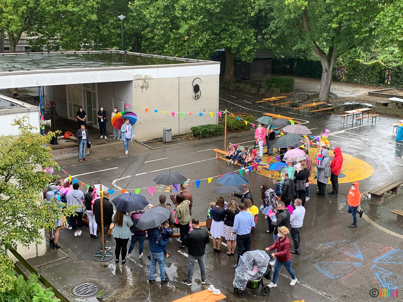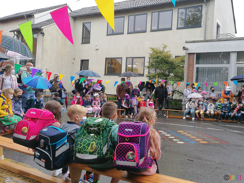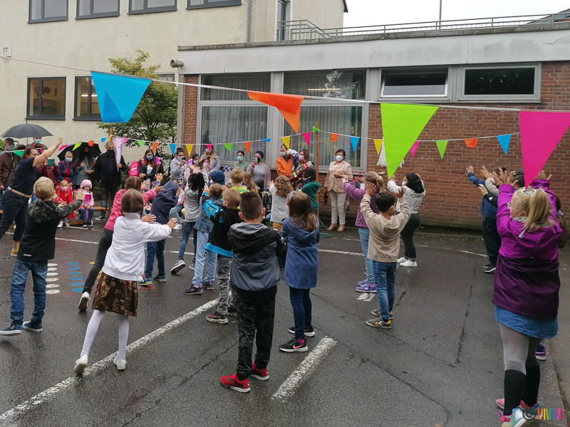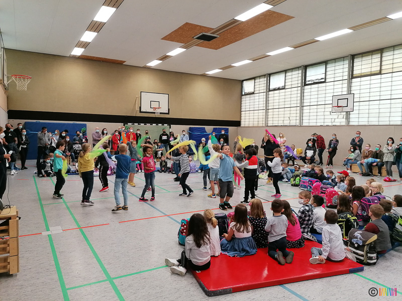 19.08.2021 - Herzlich Willkommen an der Selmigerheideschule! Am heutigen Donnerstag war es für 75 neue Erstklässlerinnen und Erstklässler so weit. Der erste Schultag an der Selmi! Aufgrund von Coronamaßnahmen wurden die Kinder in diesem Jahr klassenweise an unserer Schule begrüßt. Trotz des durchwachsenen Wetters konnten die Erdmännchen auf dem Schulhof von der Schulleitung, Vertretern der Kirchen sowie den aktuellen Zweitklässlern empfangen werden. Im Anschluss wichen die Fledermaus- und Koalaklasse dem stärker werdenden Regen und setzten die Feierlichkeiten in der Turnhalle fort. Dort wurden die Neuankömmlinge von weiteren Zweitklässlern mit einem Tanz begrüßt, ehe es wenig später in ihre neuen Klassenräume zur ersten Schulstunde ging. Währenddessen wurden die Eltern der Erstklässler vom Förderverein sowie von Eltern der 2. Klassen zu Kaffee und Erfrischungsgetränken eingeladen. Vielen herzlichen Dank an dieser Stelle für die Bewirtung und die unermüdlichen Helferinnen und Helfer. Liebe Erstklässlerinnen, liebe Erstklässler, liebe Eltern, liebe Großeltern, Freunde und Bekannte! Das ganze Kollegium der Selmigerheideschule wünscht euch und Ihnen einen tollen Start in das Schulleben!
