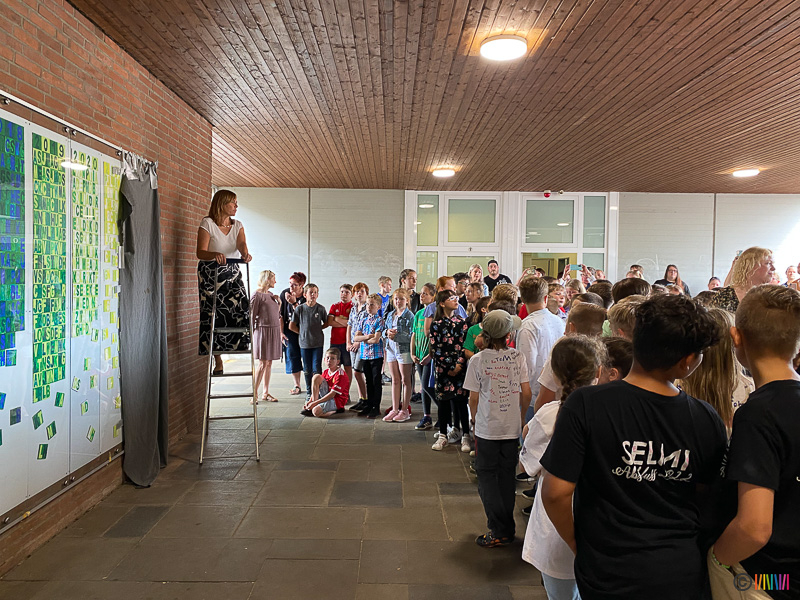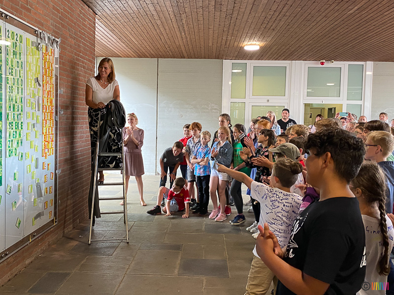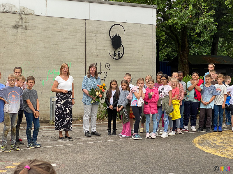 24.06.2022 - Verabschiedung der 4. Klässler sowie von Frau Beckheuer. Am letzten Schultag des Schuljahres 2021/2022 flossen neben vielen Regentropfen auch die Tränen. Die Schülerinnen und Schüler der 4. Klasse verbrachten ihren letzten Schultag an ihrer Selmi und verabschiedeten sich von ihr und ihren Lehrerinnen. Durch das traditionelle Enthüllen der Stele wurden die zukünftigen Fünftklässler an die weiterführenden Schulen "entlassen". Wir wünschen allen viel Erfolg auf dem weiteren Lebensweg. Ebenso mussten wir uns heute von einer langjährigen Kollegin verabschieden. Frau Beckheuer wird im kommenden Schuljahr nicht mehr an der Selmigerheideschule unterrichten und den wohlverdienten Ruhestand antreten. Wir bedanken uns für die schöne Zeit und wünschen ihr alles Gute für die Zukunft.