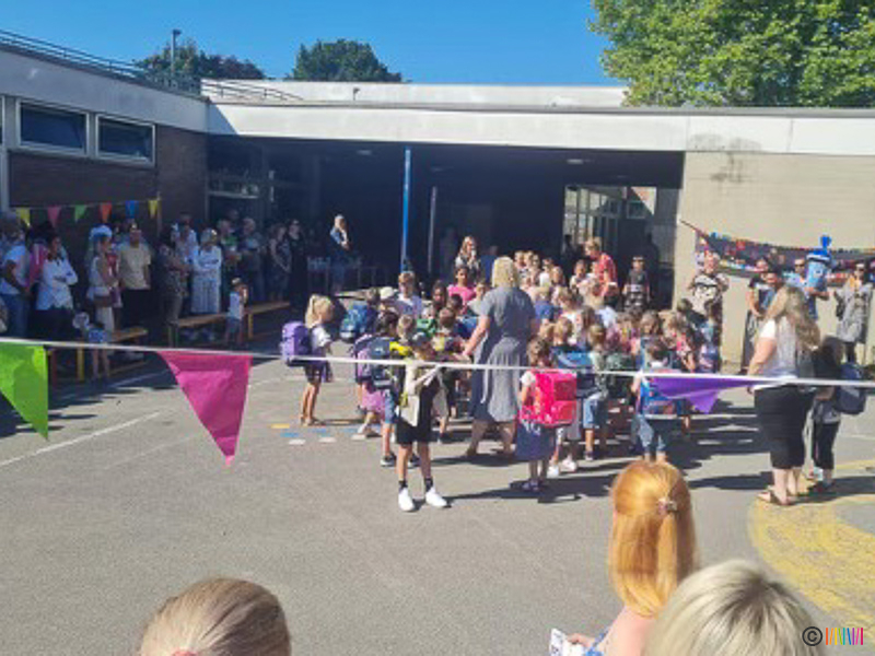 11.08.2022 - Endlich, am heutigen Donnerstag war es für die neuen Erstklässlerinnen und Erstklässler so weit. Der erste Schultag an der Selmi! Bei strahlendem Sonnenschein wurden die Kinder dieses Jahr von allen Selmis mit einem Begrüßungslied auf dem Schulhof empfangen. Weitere Zweitklässler luden die Neuankömmlinge zu einem gemeinsamen, farbenfrohen Tanz ein, ehe es wenig später für die Schildkröten, Wombats und Seehunde in ihre neuen Klassenräume zur ersten Schulstunde ging. Währenddessen wurden Eltern, Großeltern und weitere Familienangehörige der Erstklässler vom Förderverein sowie von Eltern der 2. Klasse zu Kaffee und Kuchen eingeladen. Vielen herzlichen Dank an dieser Stelle für die köstliche Bewirtung.