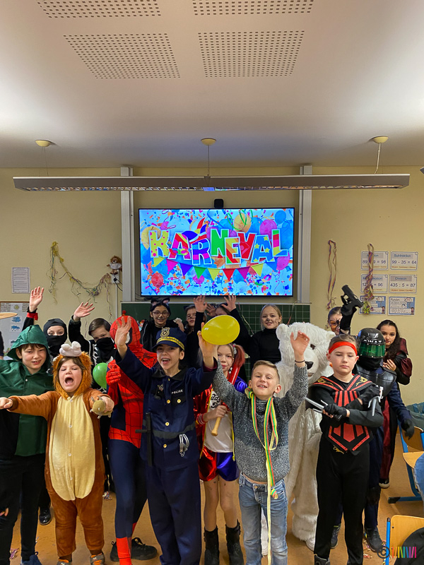 17.02.2023 - Es war endlich wieder so weit. Die gesamte Selmi verwandelte sich an diesem Freitag in eine lustige, farbenfrohe Karnevalsgemeinschaft. An diesem Morgen gab es keine Schulkinder und Lehrkräfte, sondern Piraten, Ninjas, zahlreiche Elsas, verschiedenste Tiere, Prinzessinnen, Polizisten, Chinesen, Minecraft-Figuren und vieles mehr. Alle kamen verkleidet in die Schule und es wurde lautstark, bunt und fröhlich Karneval gefeiert.