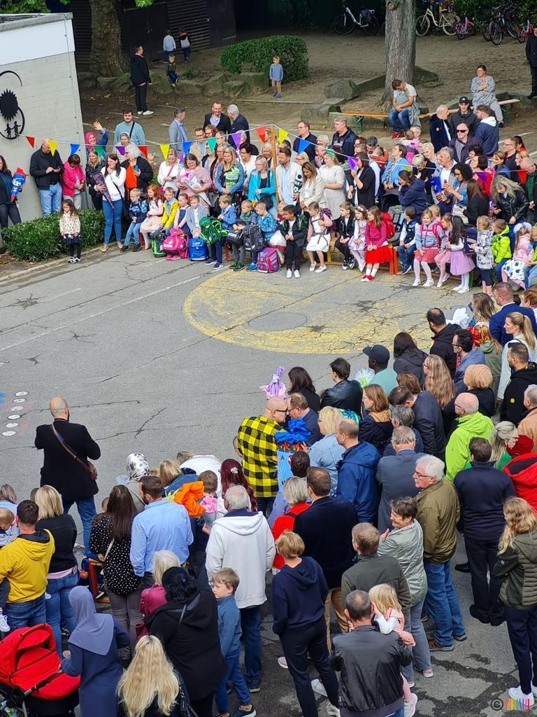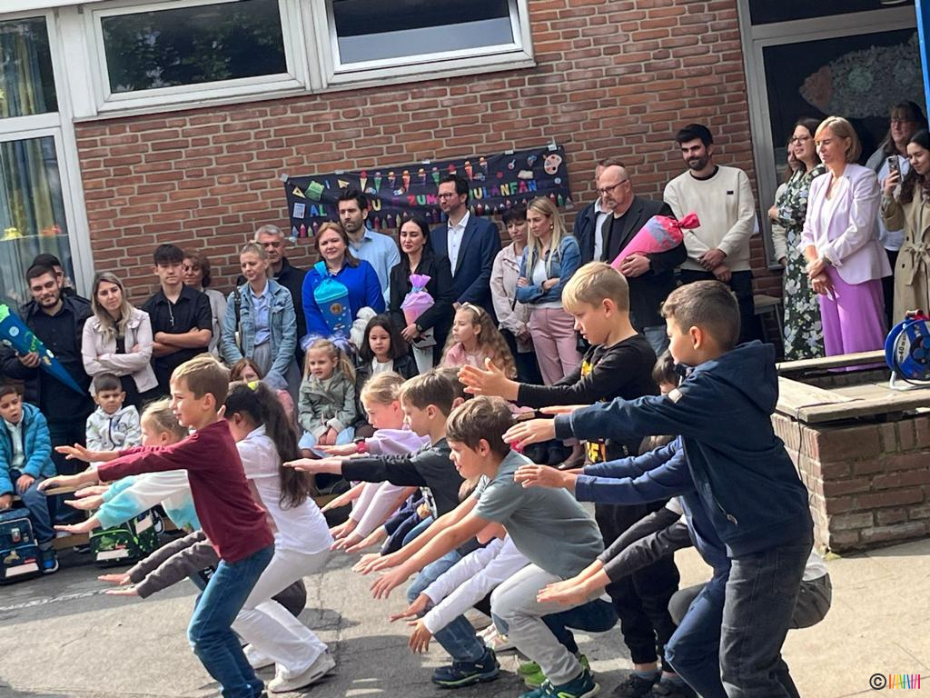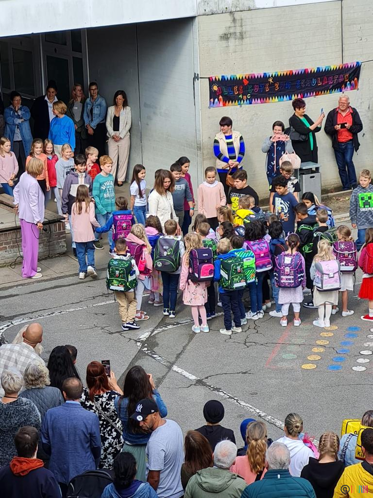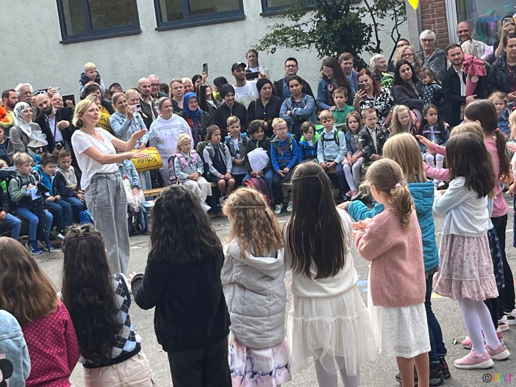 08.08.2023 - Am heutigen Dienstag war es für die neuen Erstklässlerinnen und Erstklässler so weit. Der erste Schultag an der Selmi! Bei wechselhaftem, aber gottseidank trockenem Wetter, wurden die Kinder dieses Jahr von den Kindern des zweiten Jahrgangs musikalisch empfangen. Die Klasse 2b begrüßte die Schulanfänger mit dem Lied "Verliebte Zahlen", bevor die 2c den Song "Singen ist ne coole Sache" zum Besten gab.