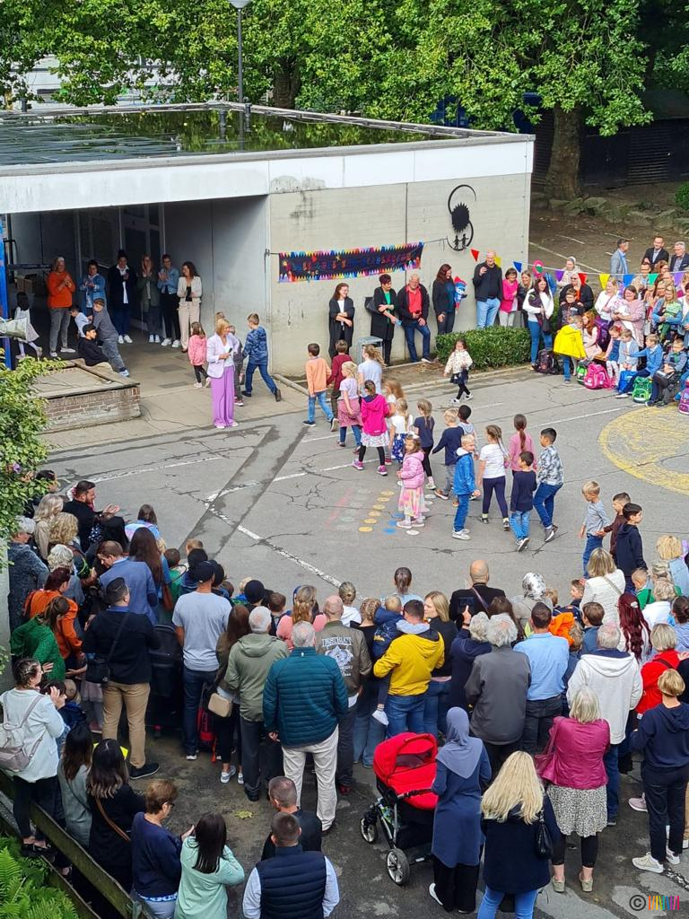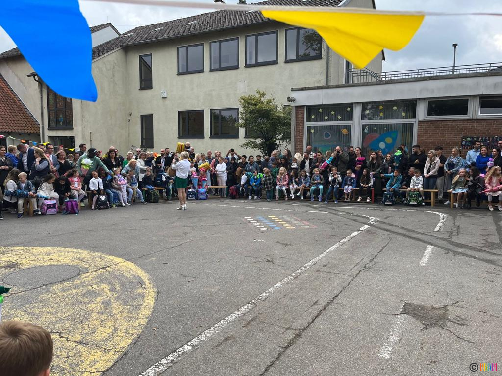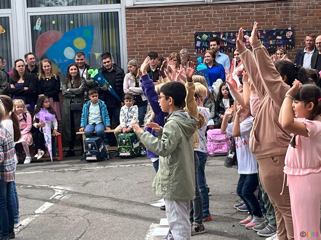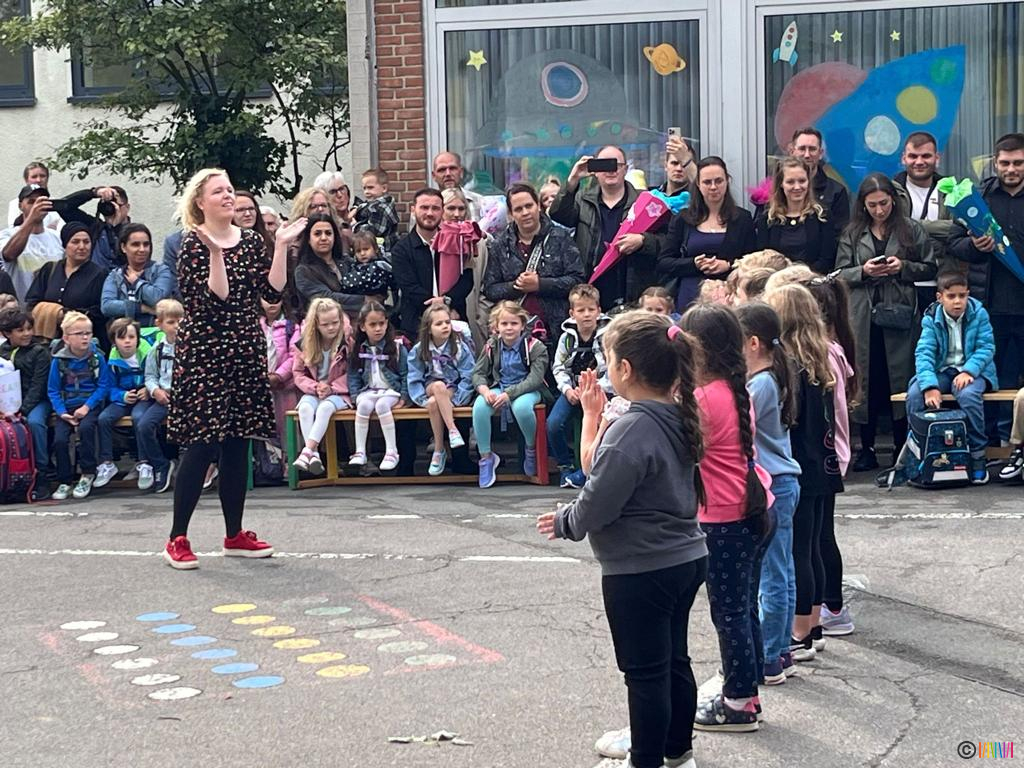 08.08.2023 - Am heutigen Dienstag war es für die neuen Erstklässlerinnen und Erstklässler so weit. Der erste Schultag an der Selmi! Bei wechselhaftem, aber gottseidank trockenem Wetter, wurden die Kinder dieses Jahr von den Kindern des zweiten Jahrgangs musikalisch empfangen. Die Klasse 2b begrüßte die Schulanfänger mit dem Lied "Verliebte Zahlen", bevor die 2c den Song "Singen ist ne coole Sache" zum Besten gab.