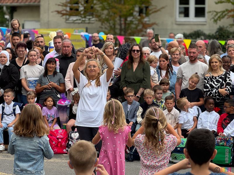 Begleitet wurde die Einschulungsfeier von einem liebevoll gestalteten Rahmenprogramm, das von verschiedenen Klassen vorbereitet wurde. Für Begeisterung sorgten die schwungvollen Tänze zu den Liedern "Verliebte Zahlen" und "Nussstrudel", die eindrucksvoll von älteren Schülerinnen und Schülern präsentiert wurden. Ein besonderes Highlight für die Neuankömmlinge war der Auftritt der Klasse 2a, die mit ihrer Darbietung zum Lied "Green Green Grass" nicht nur unterhielt, sondern die Erstklässler auch zum Mitmachen einlud ganz freiwillig, aber mit spürbarer Begeisterung. So wurde aus der Einschulungsfeier ein fröhliches Miteinander, das Vorfreude auf das kommende Schuljahr weckte.