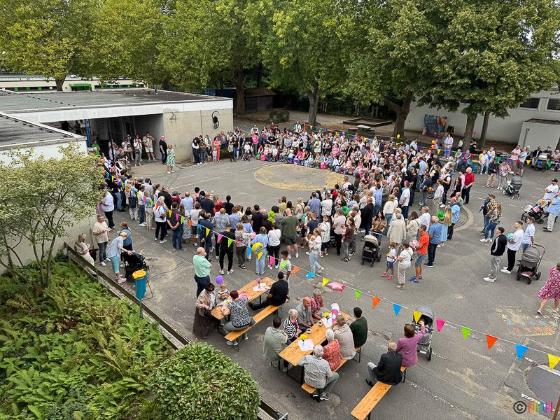 Während die Erstklässlerinnen und Erstklässler anschließend mit ihren Klassenleitungen in die neuen Klassenräume gingen, konnten sich die Eltern und Angehörigen in entspannter Atmosphäre bei Getränken und Gebäck stärken.