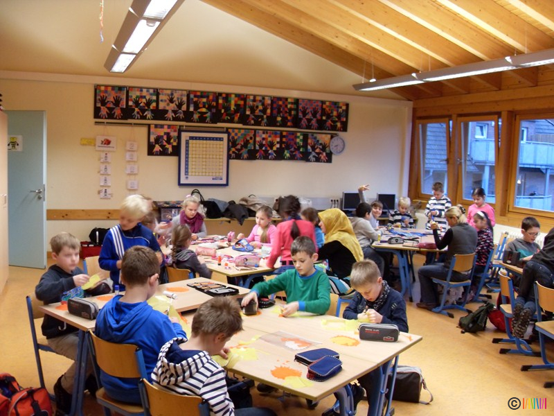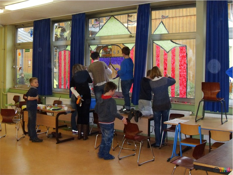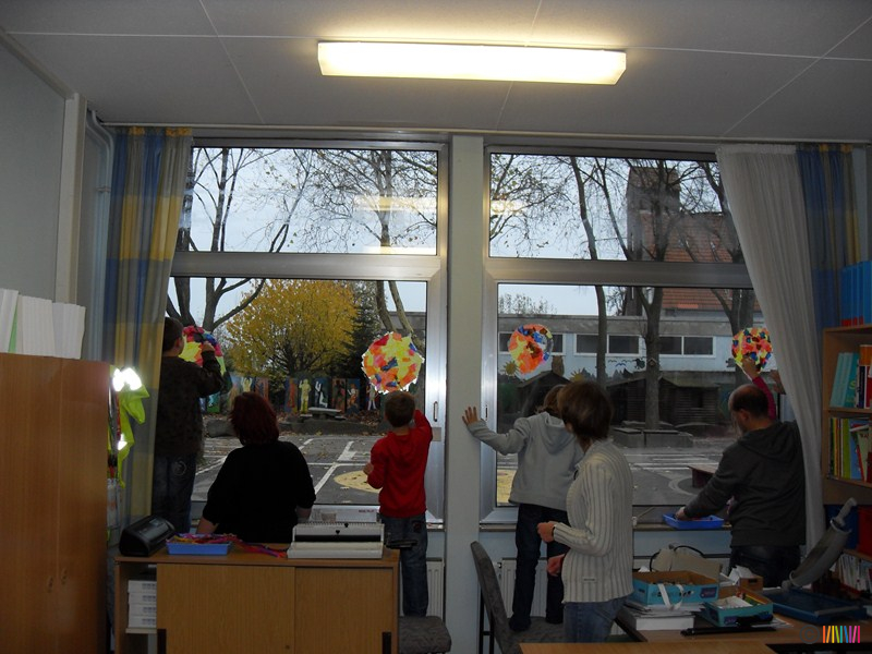 22.11.2013 - Hereinspaziert! In diesem Jahr verwandelte sich unsere Schule am Basteltag dank der tatkräftigen Hilfe zahlreicher Eltern, Großeltern und natürlich der Selmi-Kinder in eine Zirkuswelt! Einen ganzen Tag lang wurde fleißig geschnitten, geklebt und gemalt. Nun schmücken bunte Zirkuszelte, lustige Clowns, geschickte Jongleure, dressierte Tiere, elegante Drahtseiltänzerinnen und vieles mehr unsere Fenster und Türen.