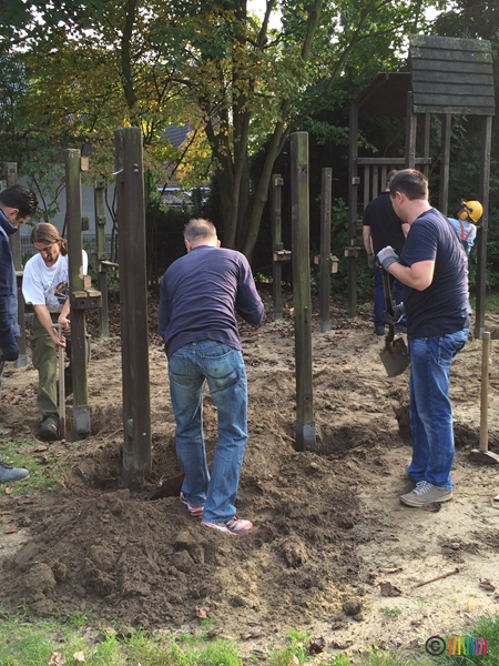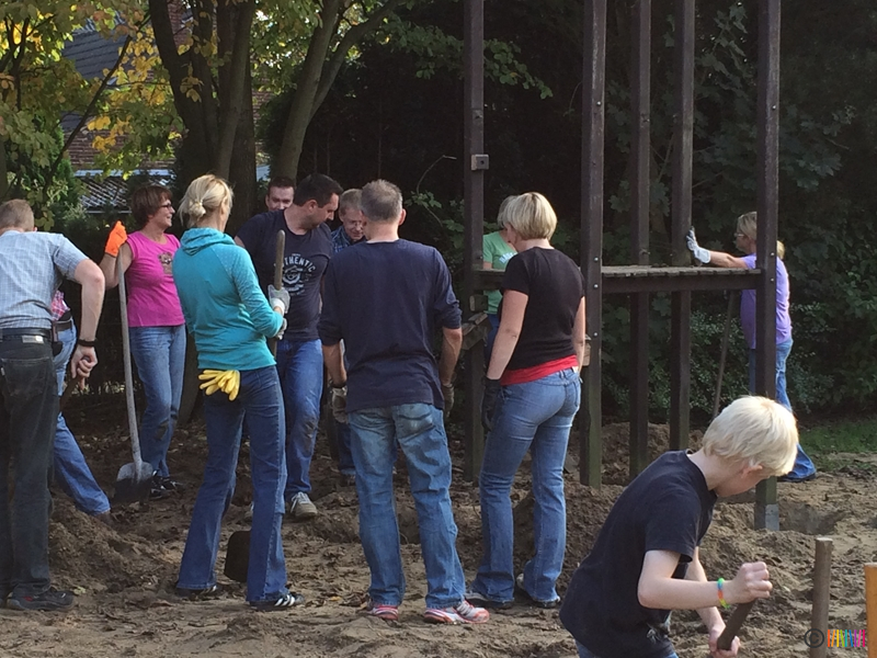 Unter vollem Körpereinsatz wurden beispielsweise die alten Spielhütten abgerissen und entsorgt. Um das leibliche Wohl unserer fleißigen Helfer kümmerte sich das Kollegium der 'Selmi' sowie der Förderverein, der die Getränke stiftete. Die ganze Aktion war ein großer Erfolg und ein wichtiger Schritt zu unserem neuen, schönen Schulhof. Auf diesem Wege nochmal an die helfenden Eltern: Vielen Dank für den tollen Einsatz!
