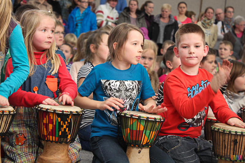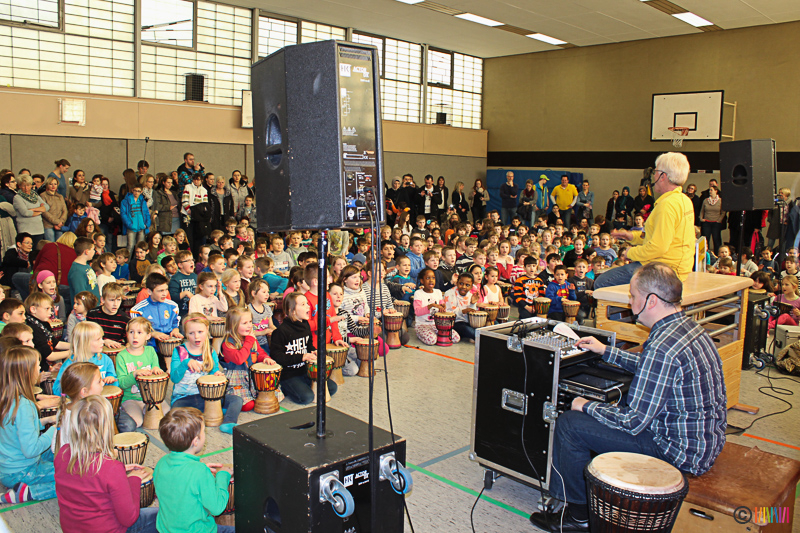 13.03.2015 - Trommelzauber. Mit mehr als 300 Trommeln versetzten Johnny und Svobodan die Selmigerheideschule ins Trommelfieber. Begleitet durch rhythmisches Klatschen, Trommeln und einigen Tanzschritten nahmen sie uns mit auf eine Reise in das afrikanische Dorf „Tamborena“. Höhepunkt des Tages war ein gemeinsames Mitmachkonzert am Nachmittag, bei dem Eltern, Geschwister und Freunde eingeladen waren, die Trommler tatkräftig zu unterstützen. Ganz herzlichen Dank an alle Beteiligten!