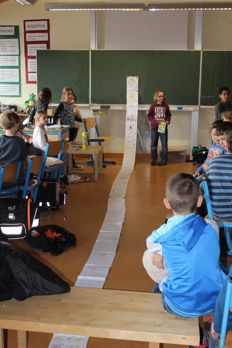 Am Freitag in der 4. Stunde hatten die Eltern und Großeltern dann die Möglichkeit, die Kinder in der Klasse zu besuchen und selbst zu schauen, was in der Lesewoche gemacht und gestaltet wurde.