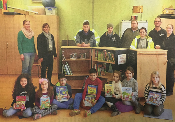 24.11.2016 - "Leseförderung dank mobiler Bücherei". Eine frei zugängliche Schülerbücherei für alle suchte man an unserer Selmigerheideschule bislang vergebens: Dank der Zukunftsfabrik des Kommunalen Jobcenters gibt es jetzt aber eine mobile Bücherei, die Platz für rund 500 Bücher bietet. Aktuell gibt es dort schon etwa 250 Medien. Es handelt sich dabei um Spenden der Eltern und des Fördervereins.