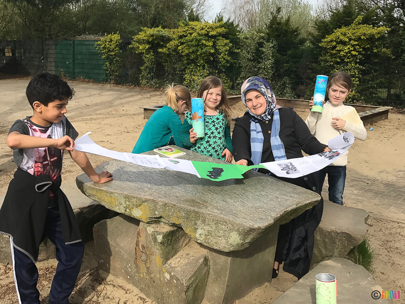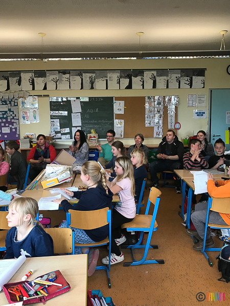 Am Freitag in der 4. Stunde hatten die Eltern und Großeltern dann die Möglichkeit, die Kinder in der Klasse zu besuchen und selbst zu schauen, was in der Lesewoche erarbeitet und gestaltet wurde. Aufgrund des schönen Wetters fanden viele Leseaktivitäten auch auf dem Schulhof statt.