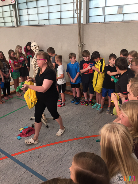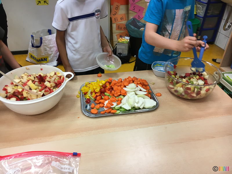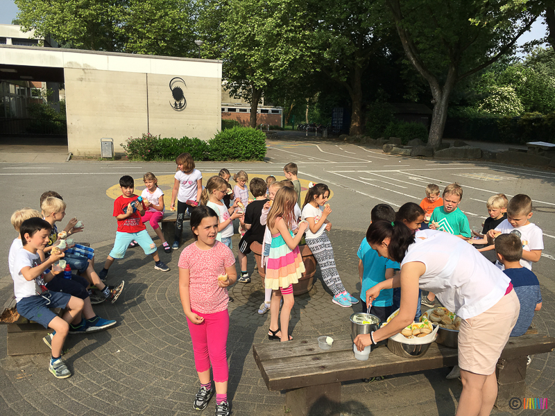 So wurden an zwei Tagen von Eltern alte Pausenspiele wie Gummitwist und Seilspringen angeboten. Ganz im Sinne einer gesunden Ernährung wurden Obst- und Gemüsespieße hergestellt und ein gesundes Frühstück aufgebaut. Gut bei den Kindern kam auch der Besuch eines Baunerhofs und des Wochenmarkts an der Friedenskirche an. Einzelne Klassen konnten auch Kresse einsäen, Jogurt und Smoothies herstellen und Brötchen aus selbst gemahlenem Mehl backen. Es war eine gelungene Woche für die wir uns ganz herzlich bei allen Eltern bedanken.