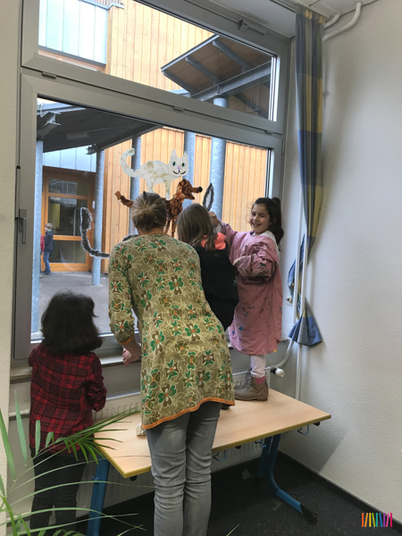 10.11.2017 - Mit Hilfe zahlreicher, sehr engagierter Eltern und Großeltern verwandelten unsere Selmikinder die Schule in eine bunte Märchenwelt. So schmücken die Bremer Stadtmusikanten, Schneewittchen, Rotkäppchen und viele andere Märchenwesen unsere Fenster und Türen. Ganz herzlichen Dank an alle Beteiligten für die farbenfrohen Ergebnisse!