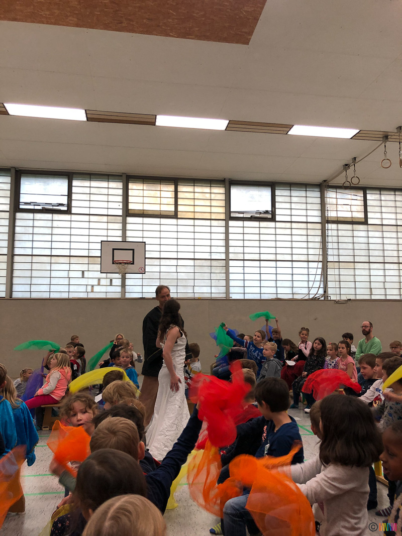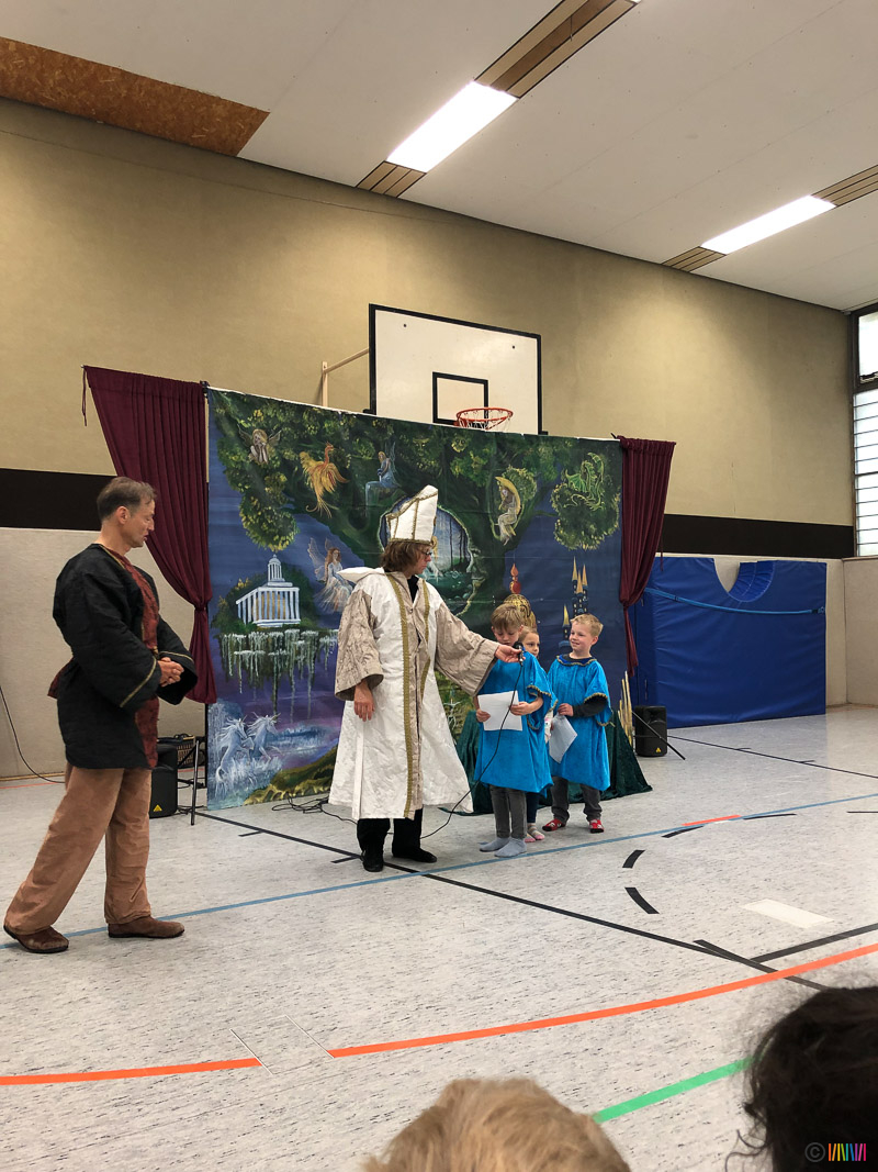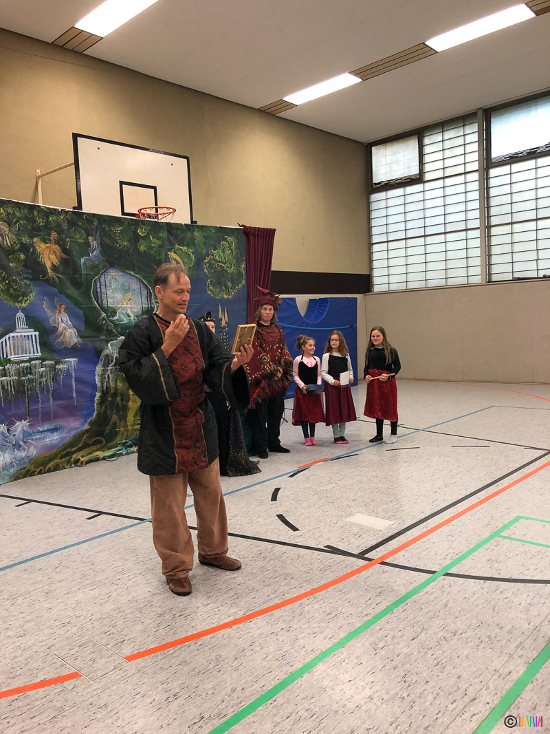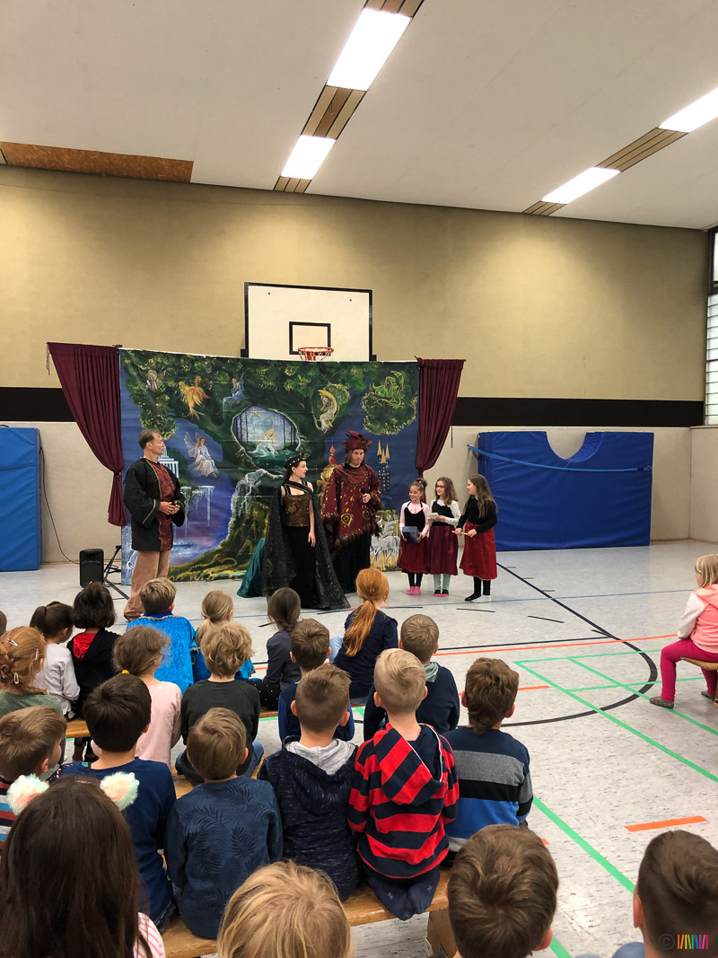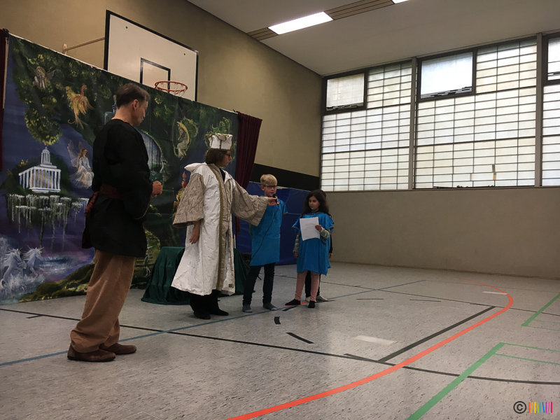 So durften sich nicht nur einzelne Schülerinnen und Schüler als Schauspieler in kleinen Rollen erproben sondern alle anderen als Chor bei den Arien "Der Vogelfänger bin ich ja" und "Ein Mädchen oder Weibchen" mitwirken, sowie am Ende des Stücks die letzte Prüfung des Prinzen Tamino gestalten. Und so waren am Ende neben Papageno, Tamino und der Prinzessin Pamina auch die Kinder absolut glücklich über eine tolle Aufführung!