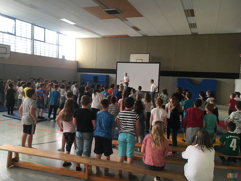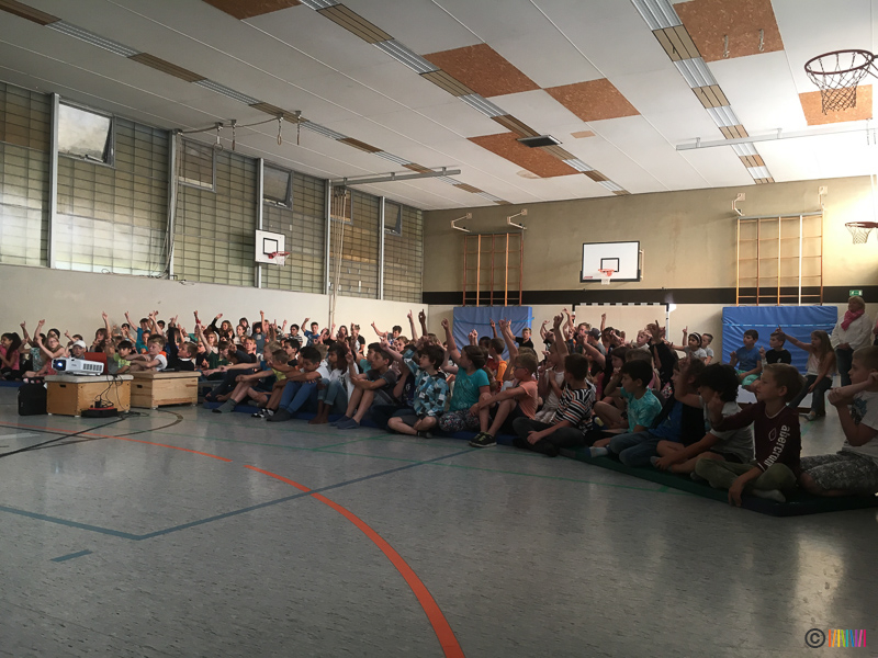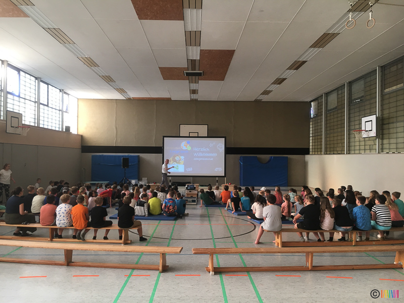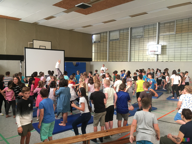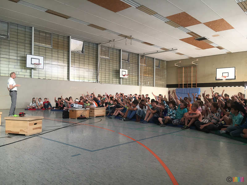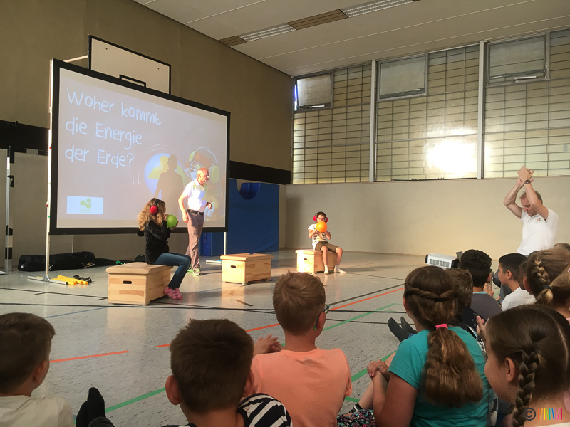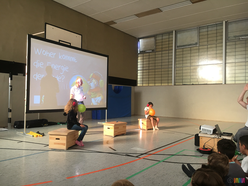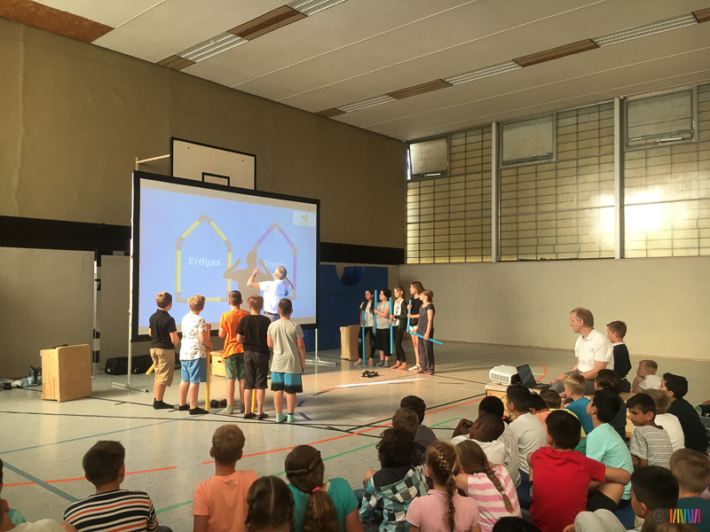 05.07.2019 - An diesem Freitag setzten die Kinder zum 3. Mal mit ihren Plakaten ein Zeichen für den Klimaschutz. Anschließend ging es für die 3. und 4. Klässler in die Turnhalle, wo sie mehr über das Klima und den Bezug zum Energiehaushalt der Erde erfuhren. Die von den Stadtwerken Hamm engagierten Energieexperten zeigten auf sehr humorvolle und spielerische Weise den Kindern genauer, was Energie ist, woher sie kommt, wie diese in die Haushalte gelangt und wie wir uns zu Hause energiesparend verhalten. Dabei nannten sie auch kleine Tipps für den Alltag, die wir alle einfach umsetzen können. So wird der ein oder andere Ratschlag hoffentlich angenommen.