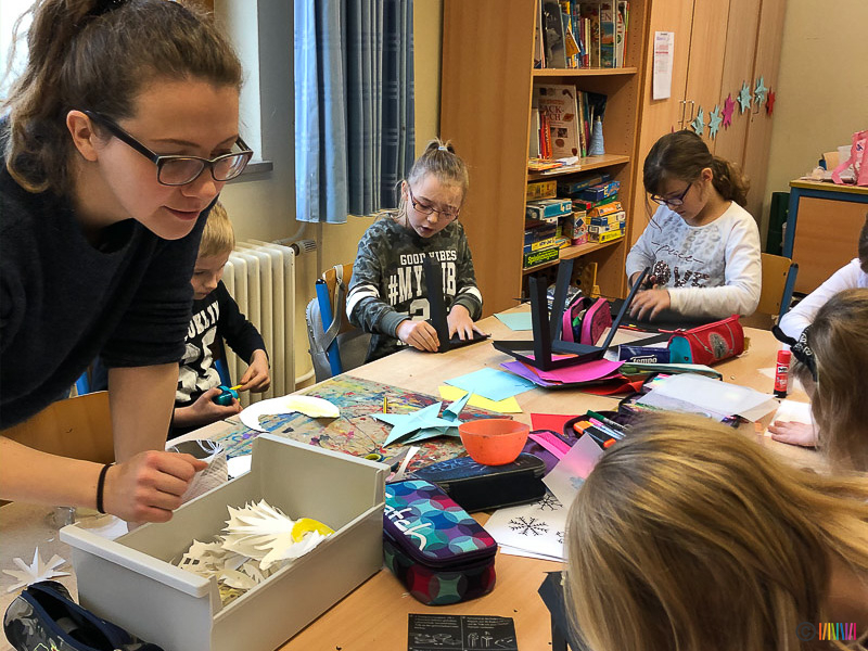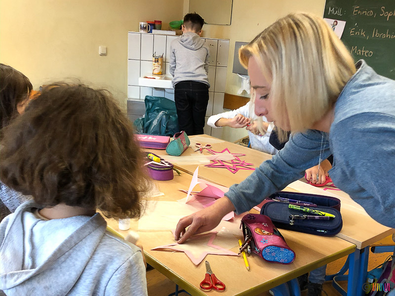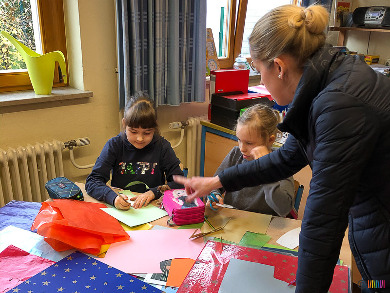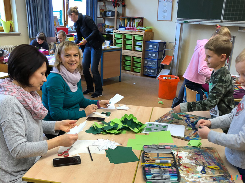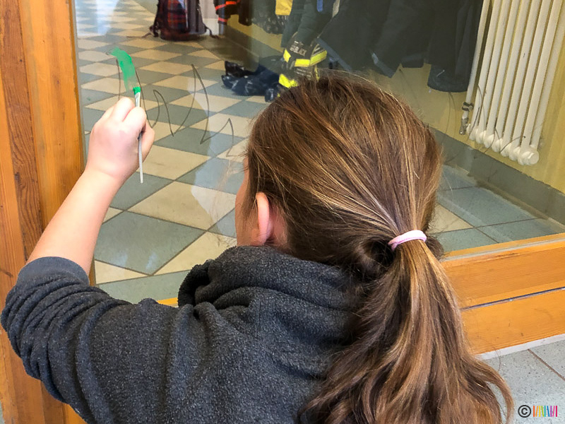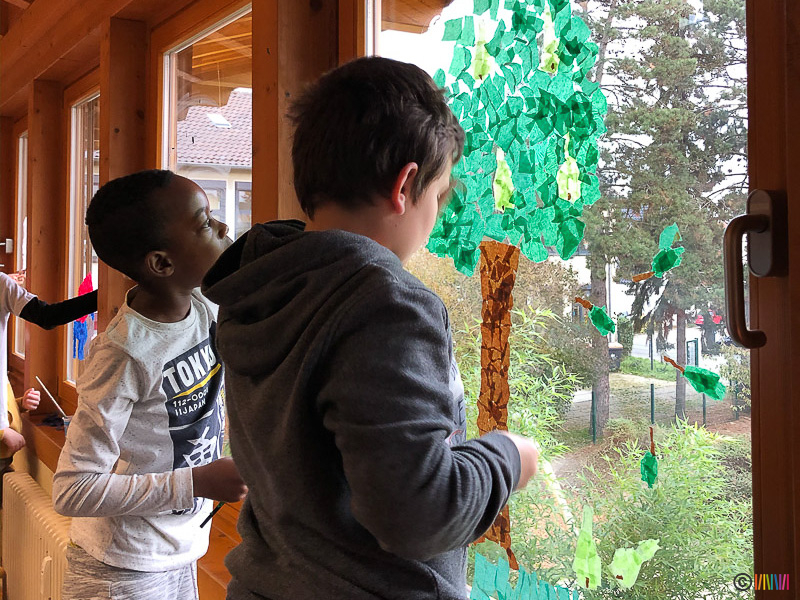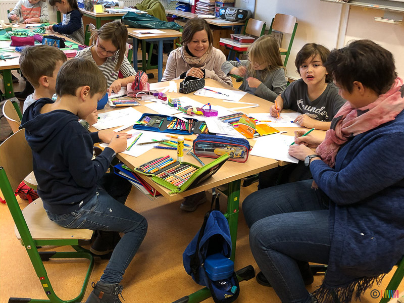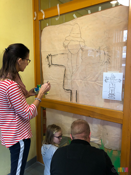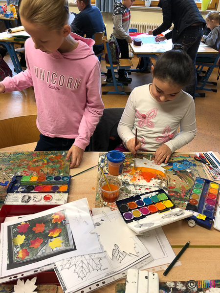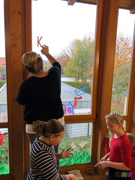 15.11.2019 - Mit Papier beklebte Fensterfronten und Kleister oder Farbe an den Fingern – Renovierung? Nein, ein Kunstprojekt, und zwar eines, das die ganze Schule einbezog und auf unser anstehendes, 150 jähriges Bestehen im nächsten Jahr thematisch einstimmt. Unter dem Motto „Schule früher - Illustrationen zu alten Liedern oder Gedichten“ verwandelte sich Dank' der tatkräftigen Hilfe zahlreicher Eltern, Großeltern und natürlich der Selmi-Kinder unsere Selmi für einen Tage in eine kreative Kunstwerkstatt.