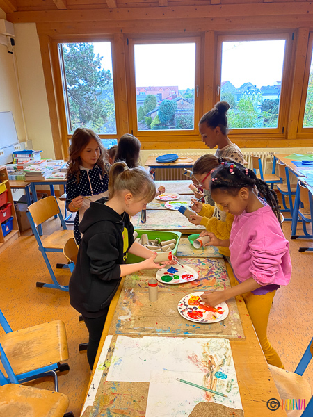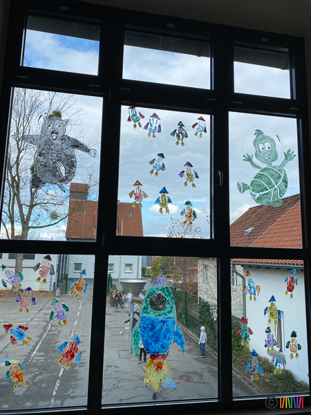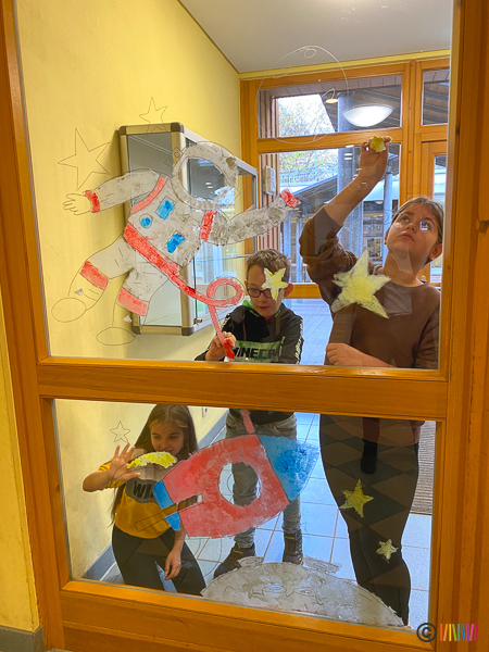 04.11.2022 - "Weltall!" Am diesjährigen Kunstprojekttag gestalteten unsere Selmikinder gemeinsam mit Eltern farbenfroh viele Schulfenster. Individuell und vielfältig entstanden unterschiedlichste Bilder aus dem Weltall. Planeten, Raketen Astronauten und viele weitere interessante Motive schmücken nun für ein Jahr unser Schulgebäude. Ganz herzlichen Dank an alle Beteiligten für die farbenfrohen Ergebnisse! Die Schulpflegschaft versorgte die beteiligten Eltern sowie Großeltern mit Kaffee und Gebäck. Hier einige Impressionen: