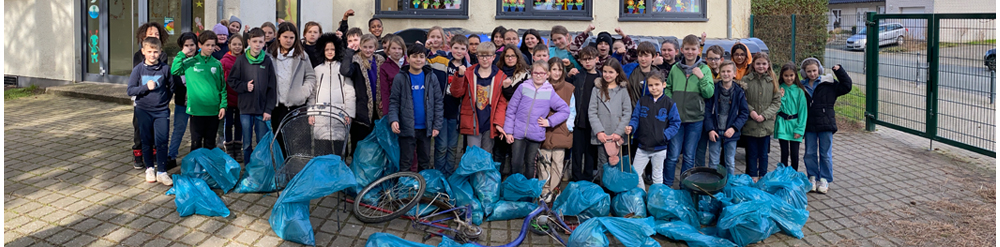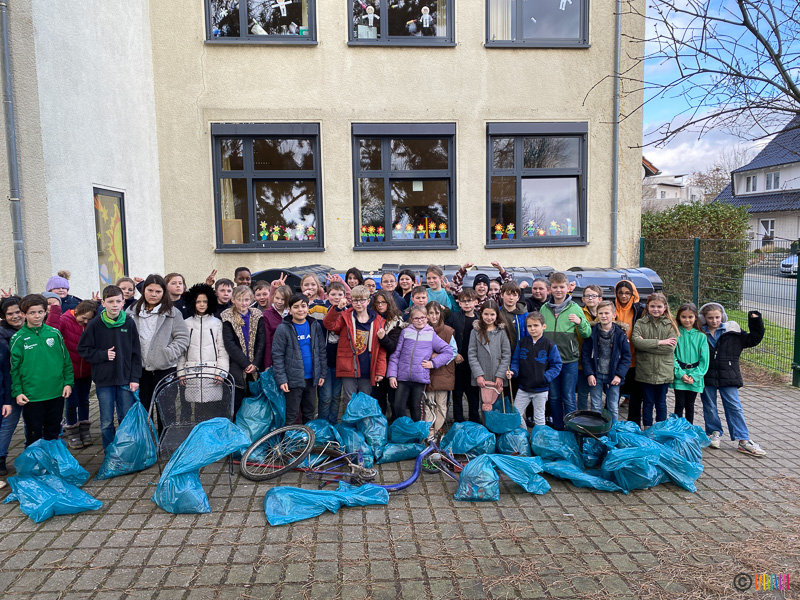 13.03.2023 - Bei windigem, aber trockenem Wetter fand am heutigen Montag unsere diesjährige Müllsammelaktion statt. Die fleißigen Viertklässler befreiten die Natur von gedankenlos weggeworfenem Müll. Mit Handschuhen, Pickzangen und Müllsäcken durchkämmten die "Bären& Tiger" Sträucher und Gebüsche, rund um unsere Selmigerheideschule. Drunter waren neben zahlreichen Plastikabfällen auch ein Fahrrad, ein Grill und ein Gartenstuhl.
