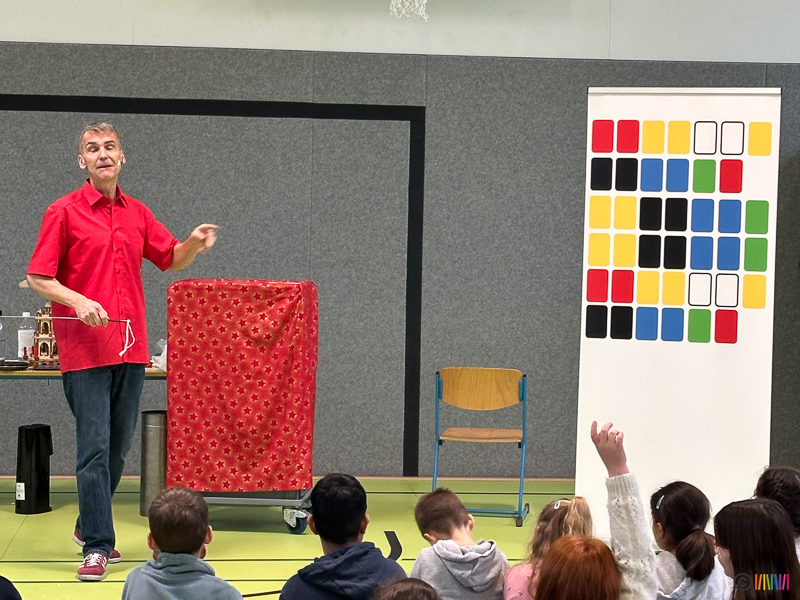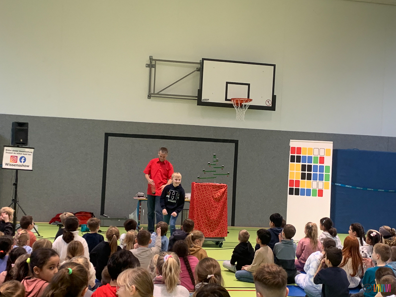 11.12.2024 - Am Mittwoch erlebten die Schülerinnen und Schüler der Selmi eine spannende und faszinierende Physikshow in der Turnhalle. Unter der Leitung von Sascha Ott wurden den Kindern auf unterhaltsame Weise verschiedene naturwissenschafte Experimente rund um Weihnachten gezeigt. Die Kinder waren besonders von den praktischen Vorführungen begeistert, bei denen sie selbst aktiv mitmachen konnten.