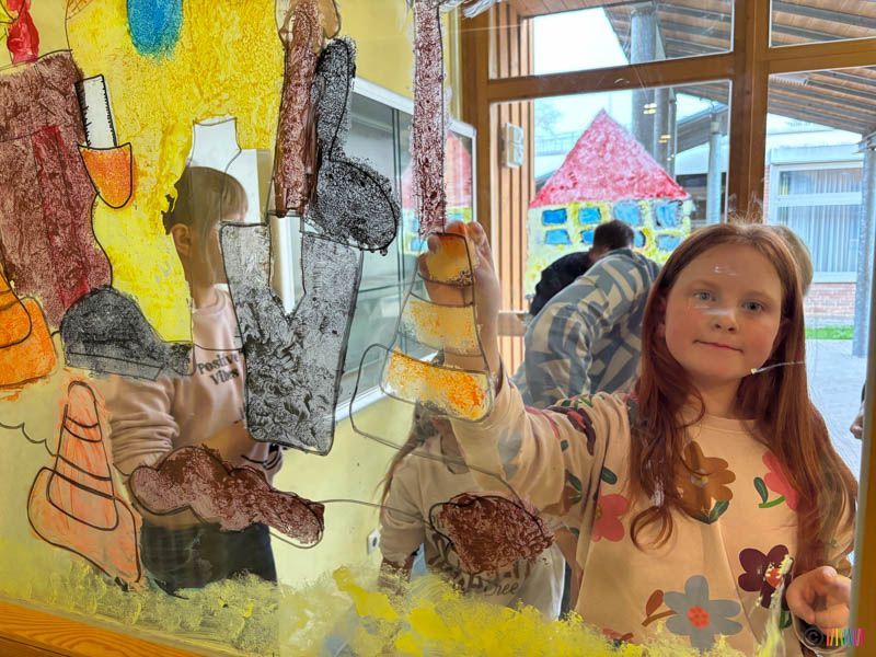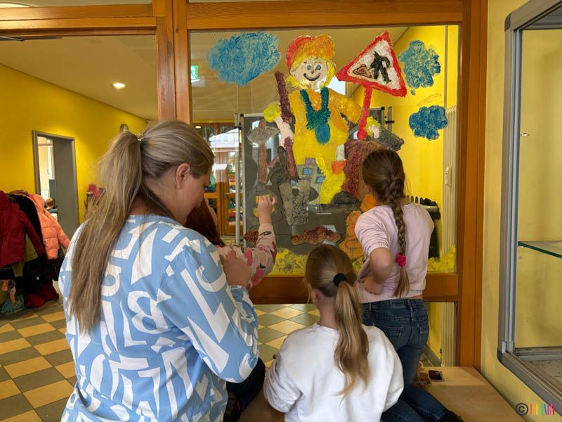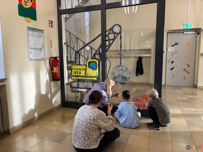 Mit viel Farbe, Fantasie und Teamgeist verwandelten die Schülerinnen und Schüler, gemeinsam mit zahlreichen Eltern und Großeltern die Fenster in farbenfrohe Kunstwerke. Ob Bagger, Bauhelme, Kräne oder Traumhäuser, die Ergebnisse zeichen eindrucksvoll, wie vielfältig und ideenreich unsere Schulgemeinschaft ist.