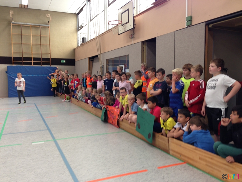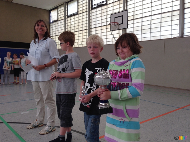 02.07.2014 - Nachdem die Spielerinnen und Spieler der 3. und 4. Jahrgänge in den letzten Tagen heiß um die Finaleinzüge gekämpft hatten, kam es heute zu den entscheidenden Finalspielen. Bemerkenswert fair gab es spannende Partien, die von tobenden Zuschauern begleitet wurden.