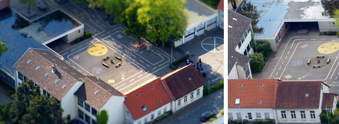An zahlreichen Bodenspielen, unseren Tischtennisplatten oder Fußballfeldern können sich die Kinder austoben.